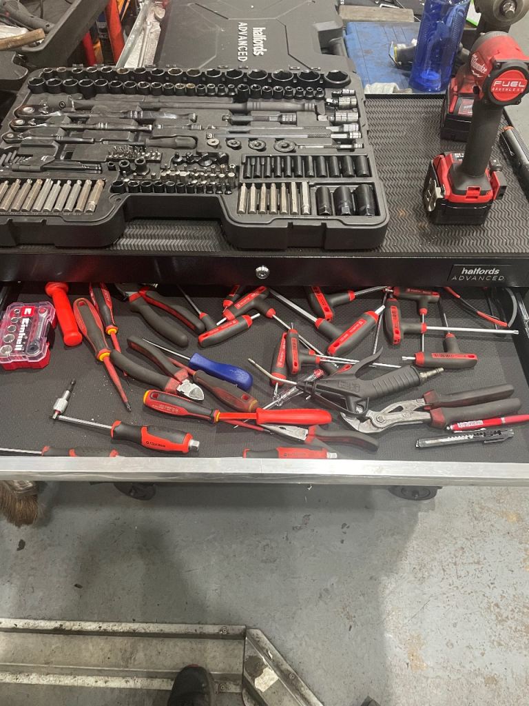 Halfords tool box with tools for sale all in good condition have receipts for all tools and box for warranty any questions 7405673270