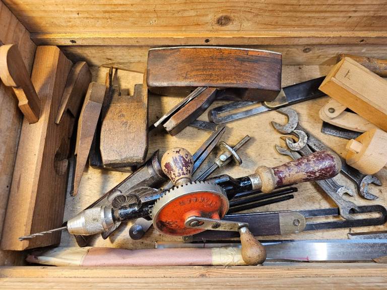 Vintage Carpenters Toolbox with Tools, see discretion.