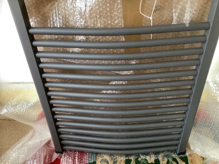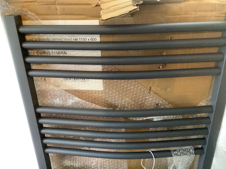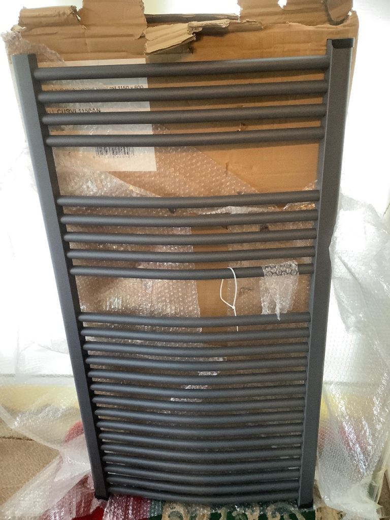 🪠 🆕 ‘BOXED’ VICTORIA PLUM CURVED ANTHRACITE HEATED TOWEL RAIL (1150 x 600)