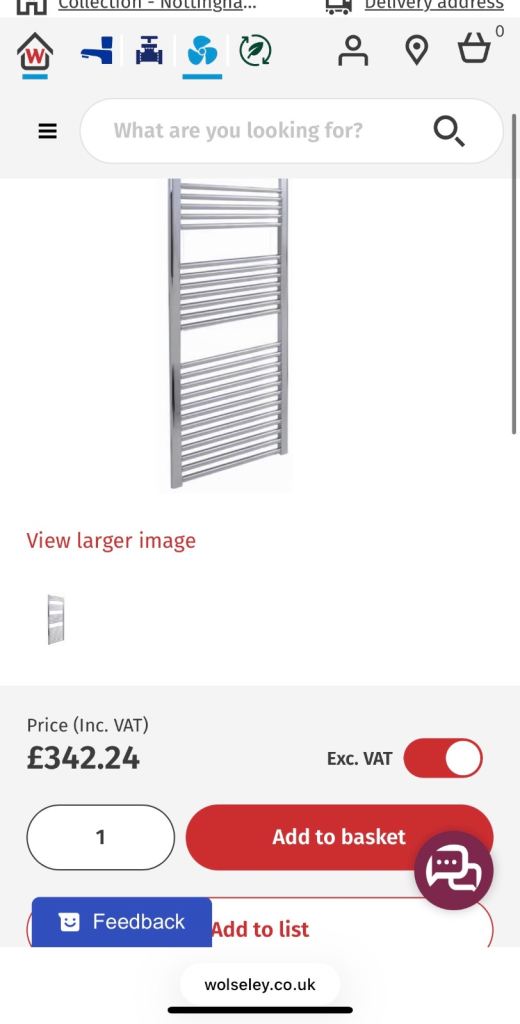 Vogue Focus towel warmer 1500 x 600mm Chrome RRP £342