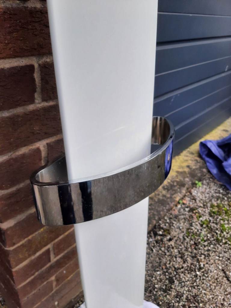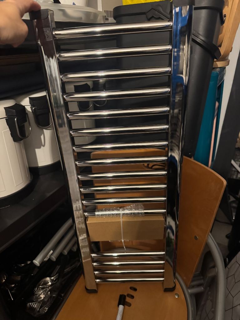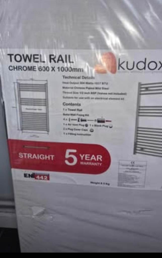 Brand new unused still in boxes chrome towel rails for use in kitchens , bathrooms or anywhere really where you need to hang things up .. There are 2 selling for £10 each
