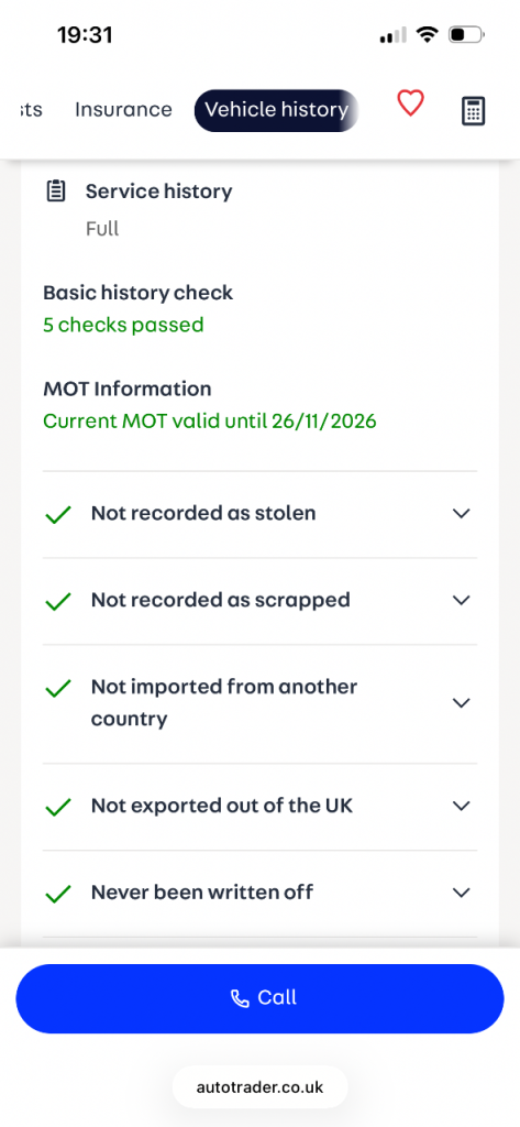 Our vehicle history check is provided for guidance only. Please check all the details with the seller before purchasing