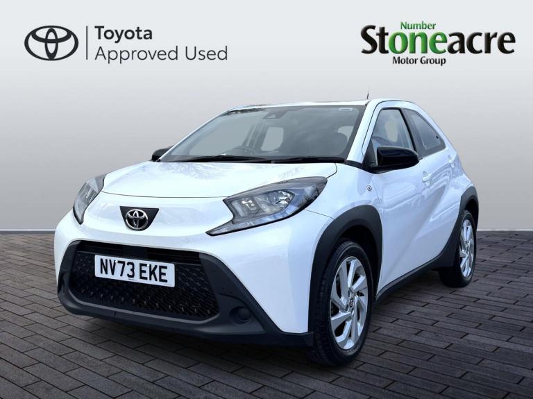 This 2023 Toyota Aygo X VVT-i Pure is a standout choice, having been owned by just one careful keeper and boasting a remarkably low mileage of only 7021 miles. This Euro 6 compliant 1.0 litre petrol model offers a refined driving experience, enhanced by a suite of modern features. Stay connected and entertained with seamless smartphone integration, including Apple CarPlay and Android Auto, while the Bluetooth connectivity ensures hands free calls and audio streaming. Navigating tight spots is made easier with the reversing camera and rear parking assistance, and for effortless journeys, Toyota Safety Sense provides adaptive cruise control, conveniently operated via the steering wheel mounted switch.The Aygo X Pure is designed to be economical and efficient, with an impressive fuel economy of 59 miles per gallon, making it a cost effective option for daily driving. Its low CO2 emissions further contribute to its environmental credentials, and it sits within a low insurance group, which can help to reduce your running costs. These highlights demonstrate how this particular Aygo X offers a superior ownership proposition compared to other vehicles in its class.