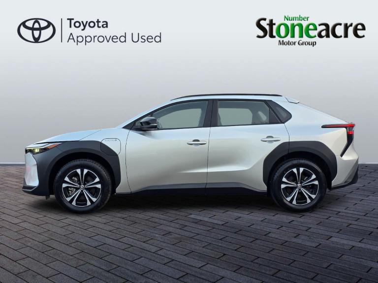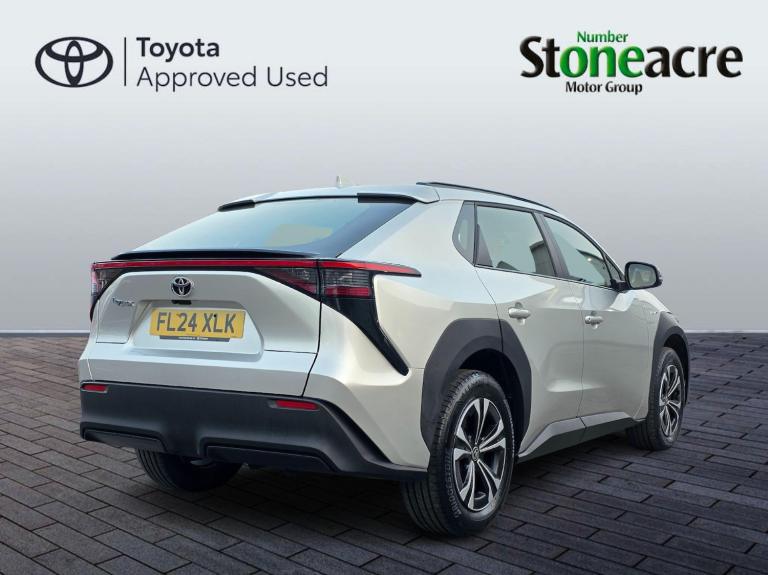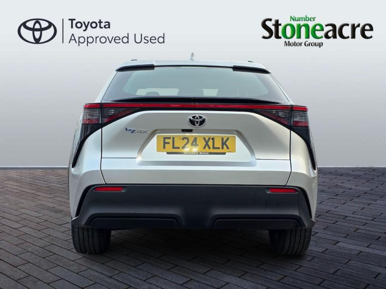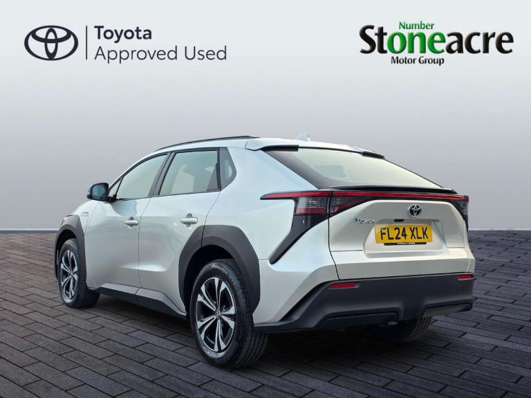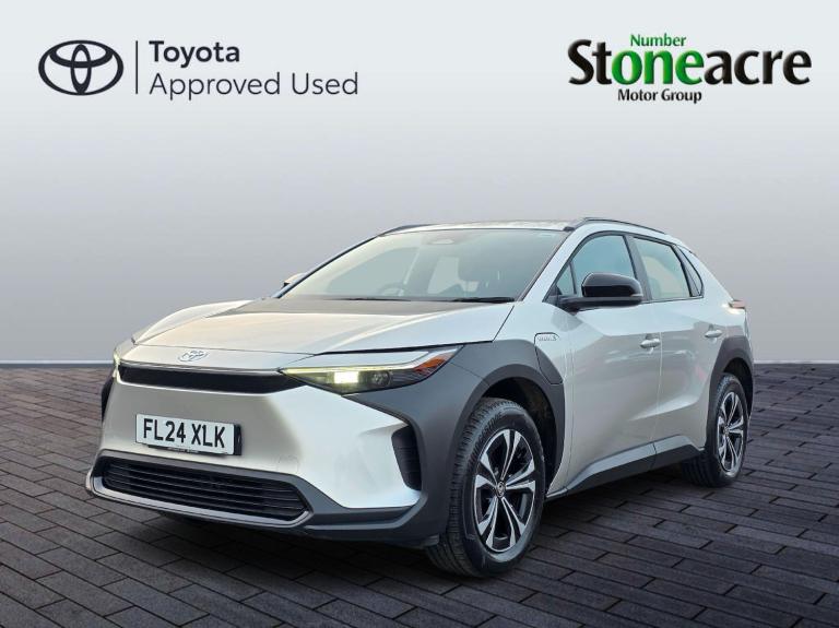 This 2024 Toyota bZ4X Pure boasts an exceptional provenance, having been owned by only one careful owner and covering a remarkably low mileage of just 10074 miles for its age. As a fully electric vehicle, it offers a substantial battery total capacity of 71 kWh, providing a maximum range of 318 miles when new. This Toyota manufacturer approved bZ4X comes equipped with convenient Smart Entry and Push-Button Start, Intelligent Adaptive Cruise Control for effortless journeys, and a Reversing Camera to aid parking. Inside, you'll appreciate the Dual-Zone Automatic Air Conditioning and the clear visibility offered by LED Headlights.The charging capabilities of this electric bZ4X are impressive, with a full charge at home using a 7kW charger taking approximately 9 hours and 10 minutes, and a rapid charge from empty to 80% achievable in just 34 minutes at a public charging station. These features, combined with its impressive range of 318 miles when new, demonstrate how this Toyota bZ4X Pure stands out from other similar vehicles, offering a compelling blend of efficiency, technology, and practicality for the modern driver.