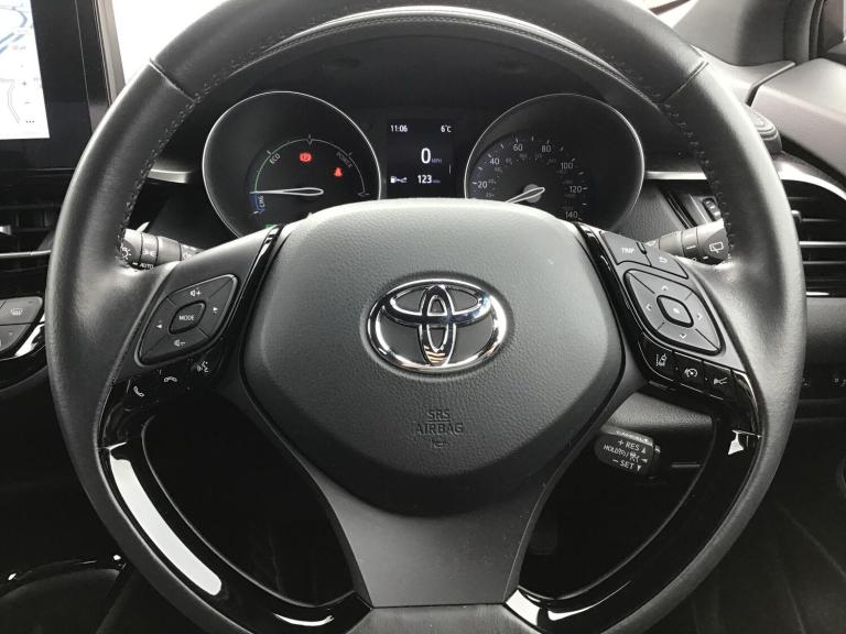 This 2022 Toyota C-HR VVT-h Design is a Toyota manufacturer approved vehicle with a full service history and remarkably low mileage for its age, having covered just 21,526 miles. This Euro 6 compliant model boasts a 1.8L petrol hybrid engine, offering an impressive fuel economy of 58 mpg. Inside, you'll find an 8in HD Toyota Smart Connect Multimedia System with wireless phone charging and Bluetooth connectivity, complemented by a reversing camera and a parking pack featuring front and rear sensors for effortless manoeuvring. The Blind Spot Monitor system, including Blind Spot Assistance, further enhances your awareness on the road.The Toyota C-HR VVT-h Design stands out with its excellent fuel efficiency, low CO2 emissions, and a low insurance group, indicating it is more economical to run and insure than many comparable vehicles. These highlights, combined with its comprehensive service history and manufacturer approval, make this C-HR a compelling choice for those seeking a stylish, efficient, and well maintained hybrid vehicle.
