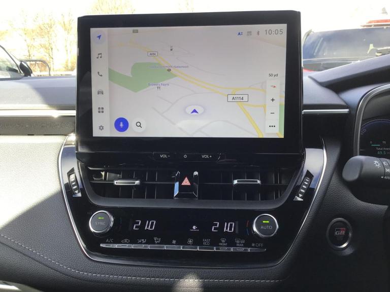 This 2025 Toyota Corolla VVT-h GR SPORT is a Toyota manufacturer approved vehicle with a full service history and exceptionally low mileage of just 8775 miles for its age. This GR SPORT trim model features a 1.8L petrol hybrid engine, meeting Euro 6 emission standards. It comes equipped with dual auto air conditioning, LED dual beam projector headlights, and LED high beam headlights for excellent visibility. For convenience and safety, it includes a reversing camera and smartphone integration with Apple CarPlay and Android Auto.This Corolla GR SPORT offers impressive fuel economy, achieving up to 60 mpg, which is significantly better than many other vehicles in its class. Its low CO2 emissions also contribute to its economical running costs, further enhanced by its low insurance group. The generous boot space provides ample room for luggage or shopping, making it a practical choice for everyday use.