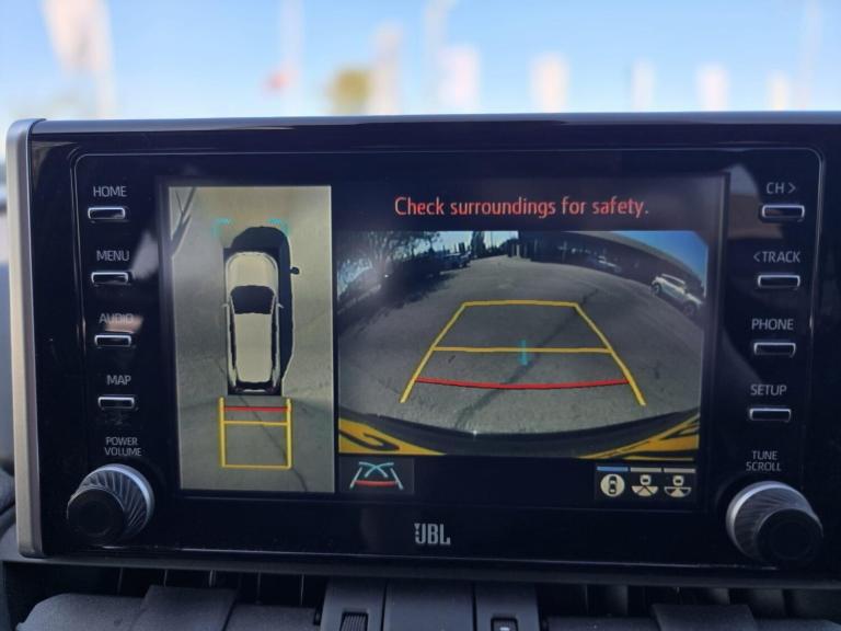 This 2020 Toyota RAV4 VVT-h Black Edition boasts an impressive full dealership service history, with its last service completed at 43,474 miles on 28th April 2026, and benefits from an MOT valid until April 2027, offering excellent peace of mind. This Euro 6 compliant, four wheel drive model is powered by a 2.5 litre petrol hybrid engine, delivering a brisk 0-62mph in just 8.1 seconds. It comes with a 6 month warranty and has had only one owner from new, with a low mileage of 43,474 miles for its age.The Black Edition trim enhances the driving experience with a range of notable features. Enjoy the convenience of automatic headlights and dual-zone automatic air conditioning, keeping the cabin at your preferred temperature. For comfort, both the driver and front passenger seats are heated. Parking is made easier with front and rear parking sensors and intelligent clearance sonar that includes automatic braking, complemented by a panoramic view monitor offering a 360 degree camera view. Furthermore, the integrated JBL premium sound system ensures an enjoyable audio experience. This RAV4 also offers generous boot space, making it a practical choice for everyday use and longer journeys.