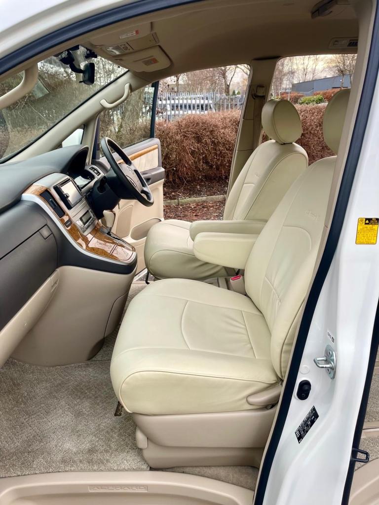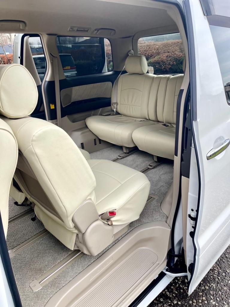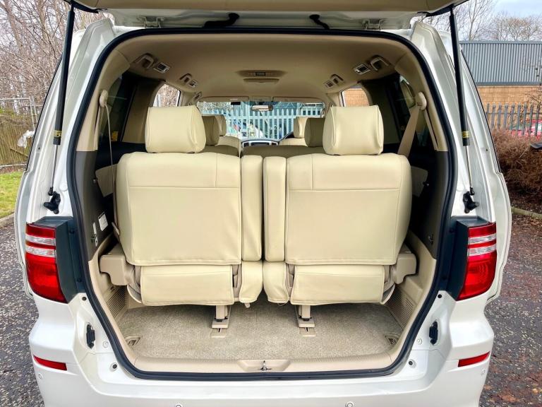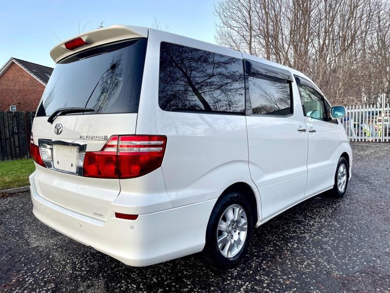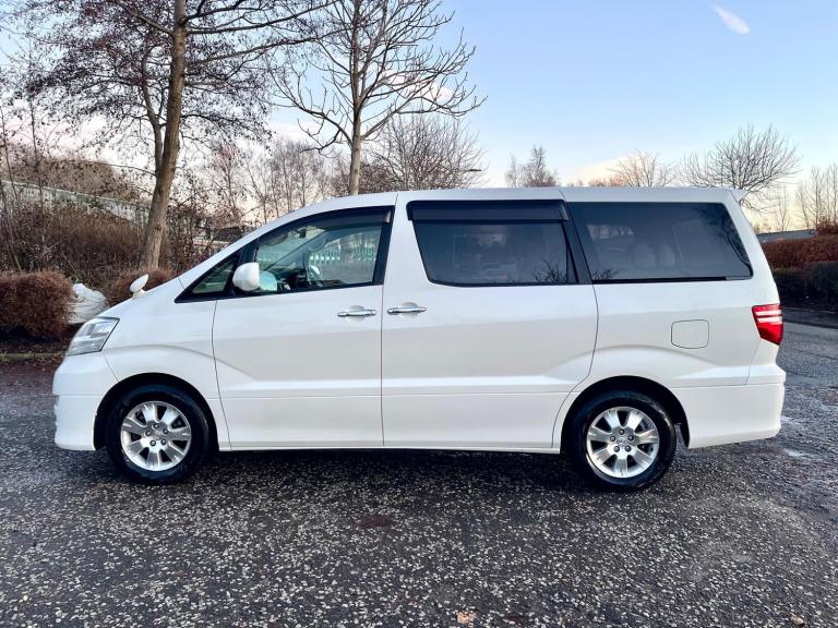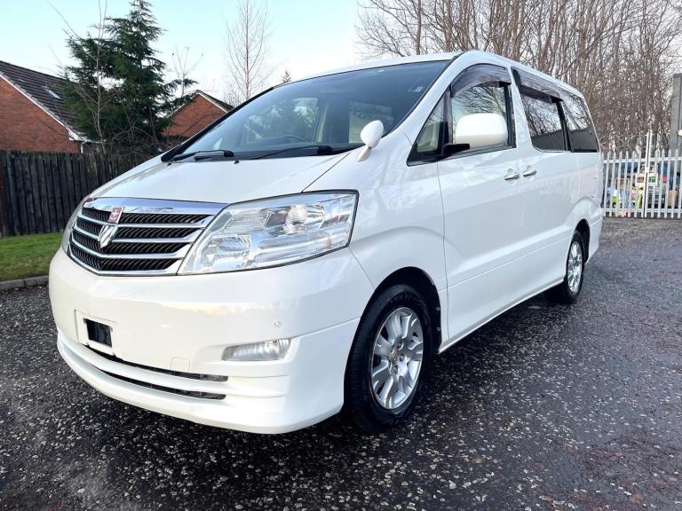 2007 Toyota Alphard 2.4 Liter G Edition Automatic 8 seats with UK SAT NAV, Cream Leather Seat Covers, Mileage: 71128, Seats: 8; Colour: Pearl White ; Doors: 5; Drive: Right-hand drive; Fuel: Petrol; Transmission: Automatic; Features: 2 Remote Key, Power Sliding Door, Fog Lights, Swivel seats; Safety Features; Reverse Camera, Front Dash Camera, Front and Rear Parking Sensors, Driver Airbag, Passenger Airbag, Middle ISOFIX Seats, Anti-Lock Brakes (ABS), Electronic Stability Program (ESP), Immobiliser, Safety Belt Pretensioners, Rear seat belts, Xenon headlights..Exterior Features; Alloy Wheels, Rear Spoiler, Tuning.In-Car Entertainment; AM/FM Stereo, USB, CD Player, MP3, DVD Player, ( UK DVD Works ), Roof Monitor, Bluetooth Telephone, Comfort; Dual Air Conditioning, Climate Control; Central Locking, Auxiliary heating, Electric Windows, Power-assisted Steering (PAS), Tilt Steering Wheel, Previously Registered Overseas, V5 Registration Document.To view or test drive please call or Email. We look forward to serving you. Engine and Gearbox warranty, MOT and UK Registration included. Delivery available. For more pictures plz visit our website Japan Glasgow Motors Ltd.