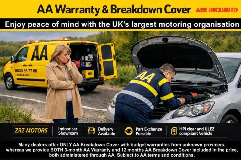 Every car comes with a long MOT, an expert vehicle data check through Auto Trader and a FREE 3-month AA Warranty plus 12 months AA Breakdown Cover (both upgradeable for longer protection).