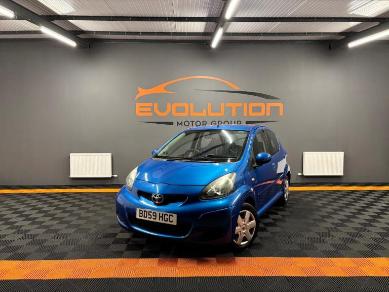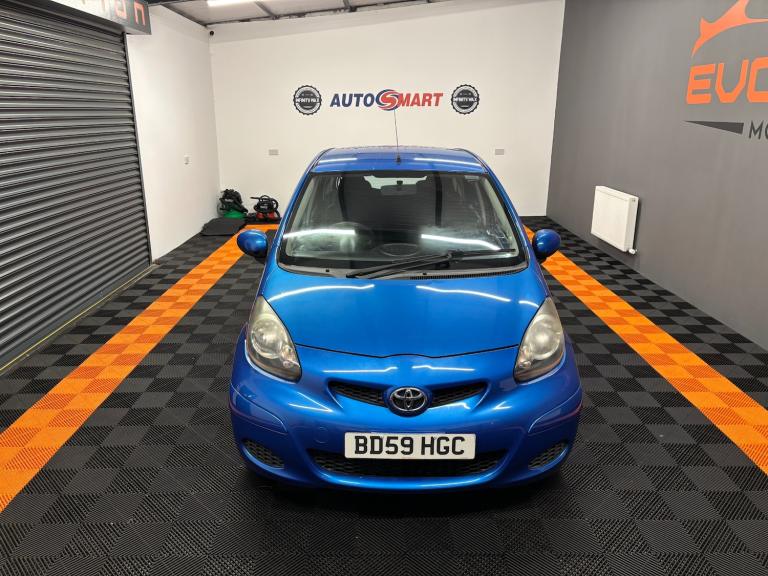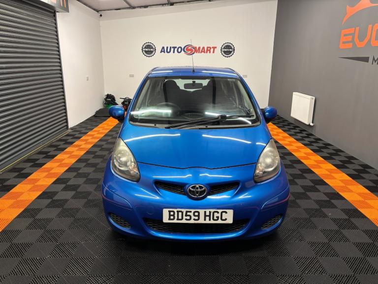 Toyota Aygo 1.0 VVT-i Blue 5dr Hatchback.. Registered - December 2009 (59-reg).. 35,000 miles.. Service history (6 x service stamps).. Last serviced - July 2025 @ 35,324 miles.. MOT - July 2026 (no advisories).. New clutch just fitted.. 2 former keepers from new.. Grade 2 immaculate condition for year.. HPI clear with print-out.. Factory fitted CD player with AUX input.. Air conditioning.. Toyota in-car phone kit.. Full size spare wheel with tool kit + jack.. Power assisted steering.. ABS. Alarm / central locking.. Electric windows.. Full detailed valet has been carried out.. Ideal first car with very low running costs.. £20 per year road tax.. Lowest insurance group.. 65+ MPG.. Outstanding inside and out.. Up to 2 years warranty available with the UK's best award winning warranty company.. Delivery service available (contact us for details)..
