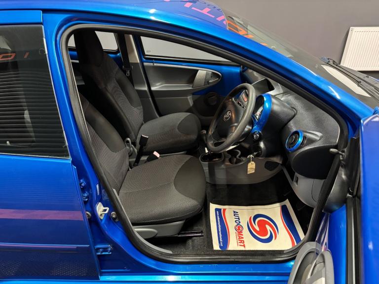Toyota Aygo 1.0 VVT-i Blue 5dr Hatchback.. Registered - December 2009 (59-reg).. 35,000 miles.. Service history (6 x service stamps).. Last serviced - July 2025 @ 35,324 miles.. MOT - July 2026 (no advisories).. New clutch just fitted.. 2 former keepers from new.. Grade 2 immaculate condition for year.. HPI clear with print-out.. Factory fitted CD player with AUX input.. Air conditioning.. Toyota in-car phone kit.. Full size spare wheel with tool kit + jack.. Power assisted steering.. ABS. Alarm / central locking.. Electric windows.. Full detailed valet has been carried out.. Ideal first car with very low running costs.. £20 per year road tax.. Lowest insurance group.. 65+ MPG.. Outstanding inside and out.. Up to 2 years warranty available with the UK's best award winning warranty company.. Delivery service available (contact us for details)..