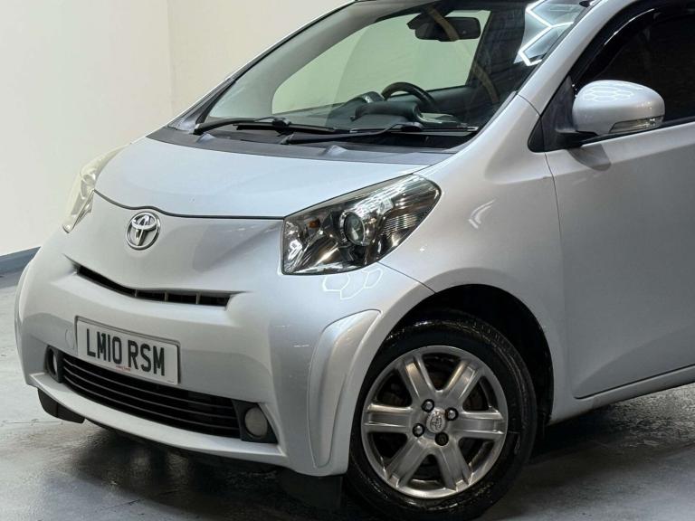1 PREVIOUS OWNER - LARGE FILE OF SERVICE HISTORY - HPI CLEAR - MINIMUM 8 MONTHS MOT AT THE POINT OF SALE - PART EXCHANGE WELCOME - NATIONWIDE DELIVERY AVAILABLE - VIEWING BY APPOINTMENT 7 DAYS A WEEK - CALL US DIRECT ON [Phone number removed] - black cloth interior, leather trimmed steering wheel, remote central locking, electric windows, electric mirrors, electric power fold mirrors, power steering, auto headlights, auto dimming rear view mirrors, climate control, air conditioning, traction control, radio, cd player, cup holders, alloy wheels, rear seat belts, abs brakes, airbags, alarm, immobiliser, drives superb, very economical model, reliable little car in good condition for its age, ulez and caz compliant.Introducing the sleek and stylish Toyota iQ 1.0 iQ2 VVT-i 3dr. This compact car is perfect for navigating the city streets with ease. With only 1 previous owner, you can trust in its reliability and performance.Finished in a sophisticated Silver, the Toyota iQ is sure to turn heads wherever you go. Its compact size makes parking a breeze, while the VVT-i engine ensures a smooth and efficient drive every time.Don't miss out on the opportunity to own this fantastic Toyota iQ. Visit us today and experience the perfect blend of style, performance, and practicality in one compact package.