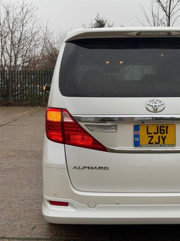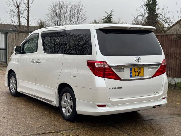 Excellent example of the Toyota Alphard 240 X 2.4 Automatic finished in white with 65,176 genuine miles. This premium Japanese import is known for its comfort, reliability and smooth driving experience. Powered by the dependable 2.4L petrol engine paired with an automatic gearbox, it delivers effortless performance and exceptional practicality. Spacious 8 seater configuration with a high-quality interior, climate control, electric sliding doors and excellent passenger comfort throughout, making it ideal for families or executive use. Fully inspected, HPI clear, warranted mileage and supplied with warranty for added peace of mind. Well-presented Alphards in this condition and price range are always in demand — contact us today to arrange a viewing or secure the vehicle before its gone..ABS Brakes, Air Bag Driver, Air Bag Passenger