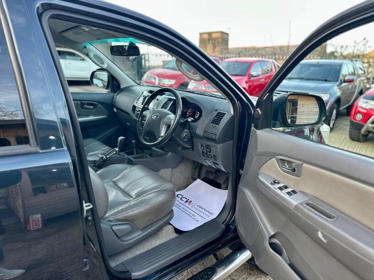 TOYOTA HILUX INVINCIBLE CREWCAB PICKUP 4WD NO VAT 3.0 D-4D DIESEL AUTOMATIC GREY REGISTRATION: FT62MLL DATE OF REGISTRATION: 07/12/2012 132,000 MILES SERVICE HISTORY TIMING BELT HAS BEEN REPLACED LONG MOT LEATHER TRIM SATELLITE NAVIGATION REVERSE ASSIST CAMERA CRUISE CONTROL ELECTRIC AUTOMATIC FOLDING DOOR MIRRORS ELECTRIC WINDOWS RADIO ENTERTAINMENT AUTOMATIC CLIMATE CONTROL MULTIFUNCTION STEERING WHEEL CENTRE ARMREST CUPHOLDERS AIRBAGS MUD FLAPS FOG LIGHTS CENTRAL LOCKING BONNET SCOOP SIDESTEPS TONNEAU COVER LOAD LINER PRIVACY GLASS RARE HIGH SPECIFICATION AUTOMATIC TOP OF THE RANGE HILUX. THIS VEHICLE WAS PREVIOUSLY SOLD BY OURSELVES IN 2022. 6 MONTHS NATIONWIDE WARRANTY INCLUDED.This 2012 Toyota Hilux 3.0 D-4D Invincible Auto 4WD 4dr presents a compelling proposition for those seeking a robust and reliable vehicle. As a 3.0 litre diesel model, it offers substantial power and efficiency, complemented by its capable Four Wheel Drive system. The Invincible trim level signifies a high specification, ensuring a well equipped and comfortable experience for both driver and passengers.The Hilux Invincible is designed to excel in a variety of conditions, making it a versatile choice. Its durable construction and proven engineering mean it stands out from other vehicles in its class. The automatic transmission further enhances its usability, providing a smooth and effortless drive whether navigating urban streets or tackling more demanding terrain. This combination of features makes the 2012 Toyota Hilux a practical and dependable option.