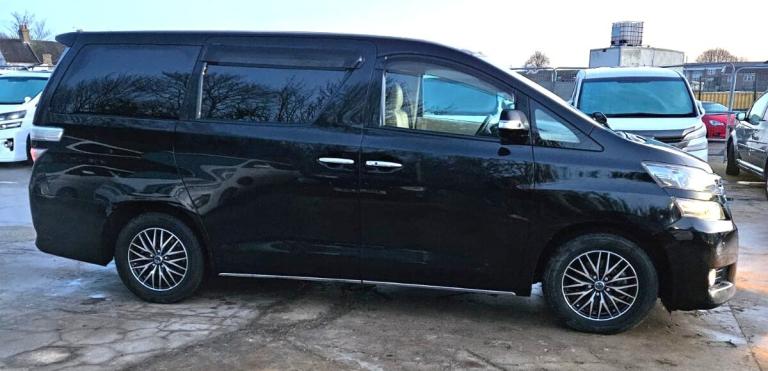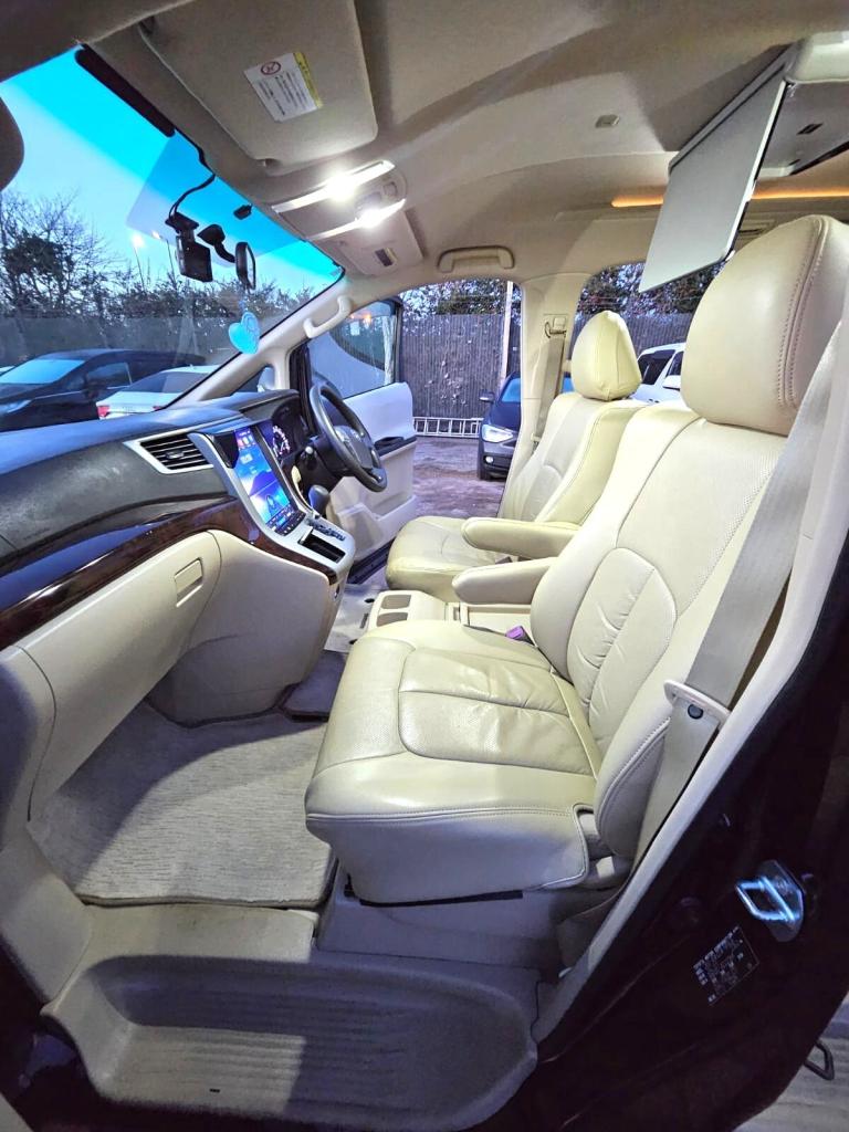 Carolina Motors UK is pleased to offer this beautiful Black color 8 Seater upgraded Toyota Vellfire for sale. REG AE12 JVD Special Warranty Offer This car comes with 40Months Gold Warranty.(Engine, Gearbox, Electricals ) FREE AA - 12MONTHS BREAKDOWN COVER FREE £75 SERVICE & MOT VOUCHER BY AA Beautifully UPGRADED screens Toyota Vellfire 2012 - 8 Seater - Lovely clean Beige Interior with leather Seat covers Sporty Look. Fresh Import from Japan. 2.4L engine with Eco mode, Fuel efficient engine. ULEZ & CAZ free. Alloy Wheels. Perfect Tyres. OPTIONAL ACCESSORIES INSTALLED WORTH - GBP 750 1. CAR RADIO UNITS REPLACED. FRONT - 12.1'' TESLA TYPE ANDROID SCREEN FITTED - CARPLAY/ANDROID AUTO. 2. ROOF - 13.3'' ANDROID TOUCH SCREEN FITTED. BOTH SCREENS CAN BE PLAYED INDIVIDUALLY. Optional Accessories can be added. 1. DIGITAL SPEEDOMETER ( GBP 400 ) 2. DYNAMIC LED TAIL LIGHTS(GBP 400) 3. MODERN STYLE STEERING can be fitted FOR £350+ Original Mileage 68301 miles only. Can be verified with auction sheet and Carvx report. Fresh MOT valid till DEC 2026. Low road tax for this vehicle category. Full Engine Service done.(Original Toyota Parts) Gearbox service done. Full Valeting/polishing done. Front Xenon white lights. Front & Rear Fog lights. 2 KEYS PROVIDED Additional Features. Alloy Wheels. Dual Zone Climate Control Air conditioning. Dual Electric Sliding Doors. Dome Lights. Tinted Windows, Push Start Stop Keyless drive and entry system. Rear View Camera. Wind deflectors. Foldable Electric Side Mirrors, All 4 Electric Windows. Front and Rear Parking Sensors, Rear both power sliding doors, Front and Rear Climate Control, and many more. V5C is ready and car ready to go. Buyer will be the first owner to drive in UK. Car is in Peterborough PE1 area and can be seen any day. Feel free to contact anytime on 01733 639260 or whatsapp [Phone number removed] Please visit our website for more options. [Website URL removed],
