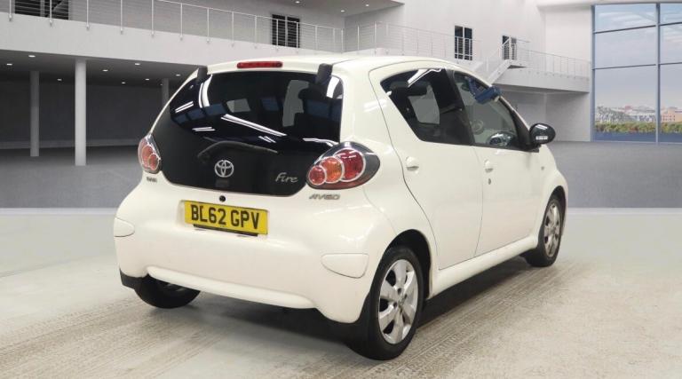 Toyota Aygo 1.0 VVT-i Fire 5dr Hatchback.. Registered - 30/01/2013 (62-reg).. 67,000 miles.. Full service history (12 x service stamps).. Just serviced - March 2026.. MOT - March 2027.. 1 year MOT.. 4 former keepers from new.. 2 x keys.. HPI clear.. 14 inch gloss black alloys (just refurbished as new) - fitted with great tyres all round.. Grade 2 condition - immaculate for the year.. £20 per year road tax.. Low insurance group.. 70+ MPG.. Full detailed valet has been carried out.. Power assisted steering.. ABS.. Alarm / central locking.. Electric windows.. Air conditioning.. Full size spare wheel with tool kit.. Ideal little hatchback with very low running costs.. Ideal first car.. Up to 2 years warranty available with the UK's best award winning warranty company.. Delivery service available (contact us for details).. FINANCE AVAILABLE.. ****New in stock - more pictures to follow****
