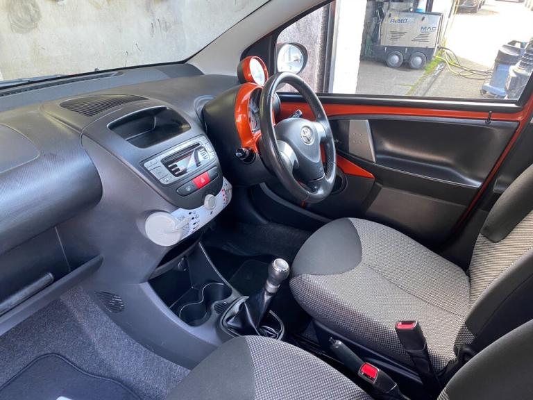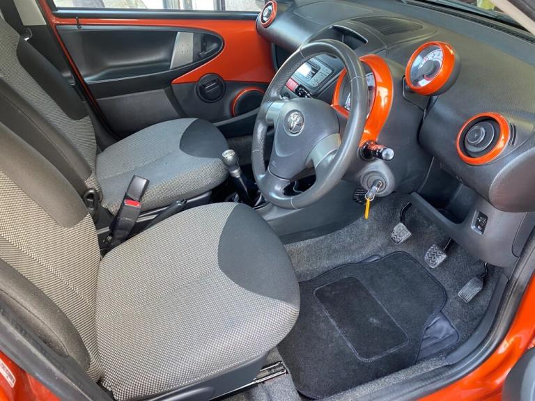 An extraordinary example of the extremely popular Toyota Aygo, which stands out in a stunning burnt orange metallic. This is the Fire version with modern conveniences such as alloy wheels, Bluetooth connectivity, CD player with AUX & USB input, electric windows, power steering and remote central locking. The same caring local lady owner since 2021, clearly a much loved car in amazing condition for its age and this is mirrored by an incredibly low 55,000 miles on the clock with a fuel service history. Powered by a super economical 1.0 litre engine, ensuring a high potential miles per gallon, only £20 a year road tax and a hugely desirable group 2 insurance. An eye-catching and always sought after little 5 door hatch back.. Full Service History,£20 A Year Tax,2 Keys,Alloy Wheels,Anti-Lock Brakes,Bluetooth,CD Player with AUX & USB Input,Electric Windows,Immobiliser,Multiple Airbags,Part Exchange Welcome,Power Assisted Steering,Remote Central Locking