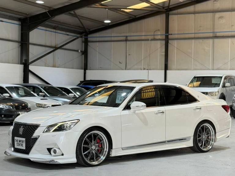 FRESH IMPORTGRADE 3.5FULL TRD BODY KITNEW SHAPE Hand-picked directly from Japan, this high-spec Crown is a non-accident, rust-free example, officially graded 3.5 at Japanese auction with certified mileage. The vehicle benefits from an extensive factory and upgraded specification, including: Full TRD Body Kit Front Chrome Crown Logo Large Front Grill With Chrome Surround Xenon headlights DRLs Chrome accents Wind Deflectors Privacy Glass 20" Work Chrome Deep Dish Split Rim alloys Brembo Calliper Covers TRD Side Skirts TRD Frontlip Pearl White paint TOMs Quad Exhaust Large Rear Diffuser Ducktail Spoiler Fog Lights Electric Seats Drivers memory seat Full factory Leather interior Brown Stitching Keyless entry Keyless go Factory athlete branded mats Electric tilt and slide sunroof Electric steering column Multifunction steering wheel Cruise control Power folding mirrors Auto high beam assist Headlight washer button Digital dual zone climate control Bluetooth/AM/FM/CD Electric Rear Blind Vehicle Drive modes Auto windows all round Dynamic mirror indicators Buy with confidence from The Import Centre. All vehicles are supplied with: Authenticated Japanese auction sheet BIMTA-certified mileage 6-month parts & labour warranty All vehicles are available to view in our well-lit, indoor showroom. *****NATIONWIDE DELIVERY AVAILABLE***** Vehicle registered: 01/05/2013.