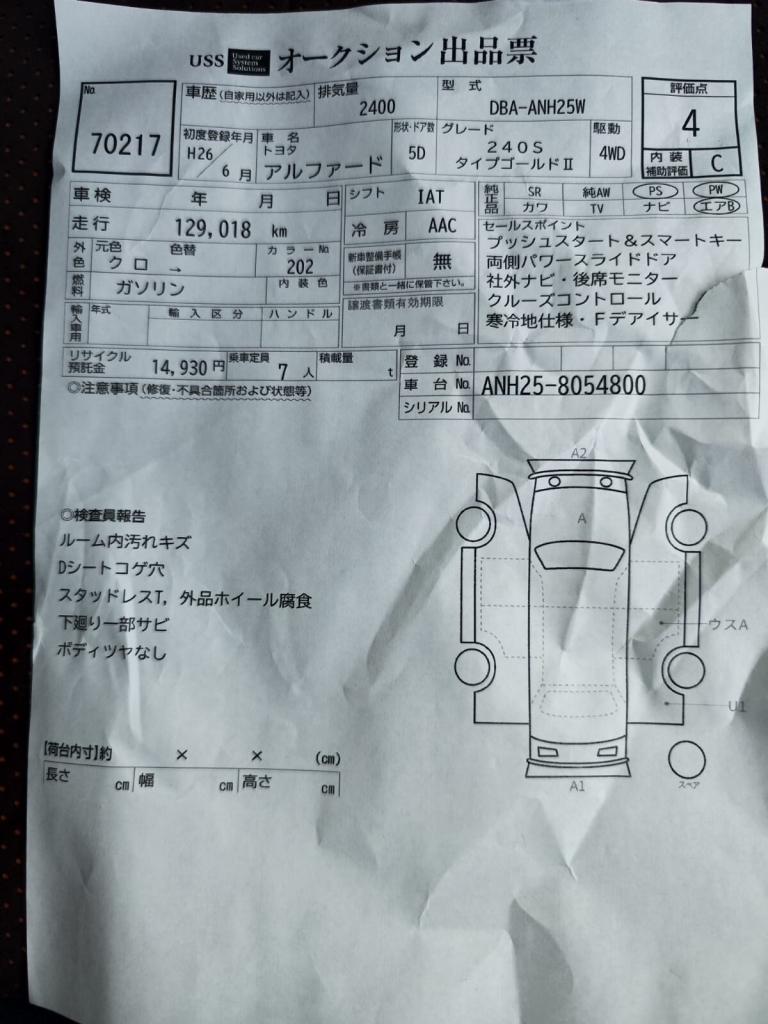 Posting for 17+ years2014 Toyota Alphard TYPE GOLD 2,2014(14) SELECTIVE 4 WHEEL DRIVE MPV Petrol Automatic