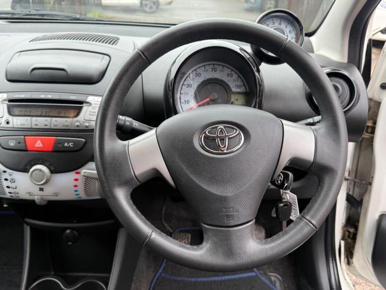 This 2014 Toyota AYGO VVT-i Move boasts a single owner from new, offering a unique provenance for this well maintained vehicle. Powered by an efficient 1.0L petrol engine, this AYGO Move comes with a 12 month MOT provided on purchase and has a documented last service at 101812 miles. Inside, you will find practical features such as Air Conditioning to keep you comfortable and Bluetooth Connectivity for seamless phone integration. A 1 month warranty is also included for your peace of mind.The highlights of this Toyota AYGO Move demonstrate its excellent value. With an impressive fuel economy of 66 mpg, it is designed to be economical for everyday driving. Furthermore, its low insurance group rating means running costs are kept to a minimum, and its low CO2 emissions contribute to a more environmentally friendly performance compared to many other vehicles in its class.