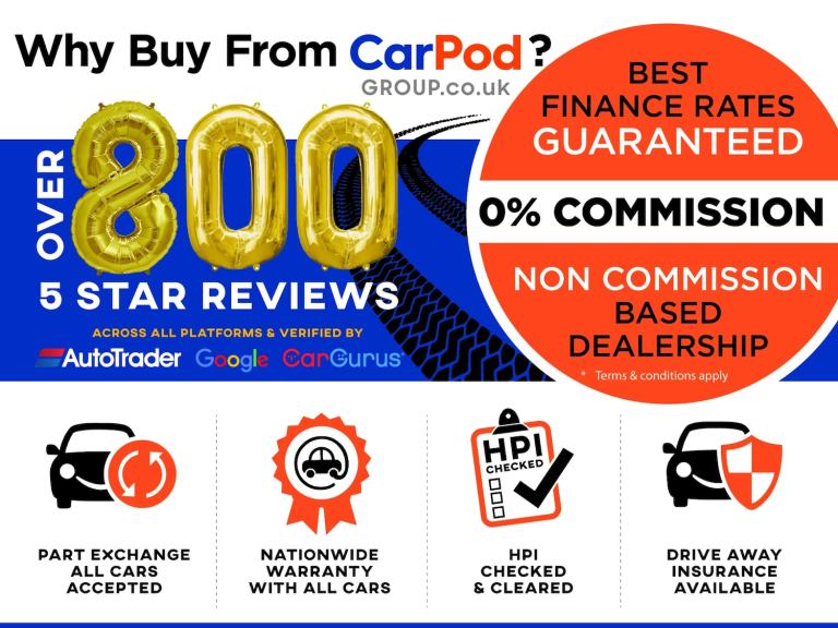 Welcome to Car Pod Group, we are a family run used car dealership, conveniently based in Bredbury, Stockport. With a wealth of experience and over 25 successful years in the industry, we aim to supply the right car for you. Being a family run business, we take pride in our to ability to add the personal touch and go the extra mile, from impartial advice/guidance, to delivering your chosen chariot directly to your doorstep. Combining this with our excellent after sales care, and a zero pressure sales approach, you are sure to have a pleasant buying experience. We aim to build a long standing relationship, for us to be your first point of call for all your families motoring requirements in the future. Visit us for a welcoming, relaxed approach to buying a used car, or even a coffee and a chat! Our hands-off strategy means you can be certain you are buying the car that YOU want. Being a digital retailer, we can commit to supplying quality cars at affordable prices. **PLEASE CALL TO CHECK AVAILABILITY BEFORE TRAVELLING** **PLEASE VISIT OUR WEBSITE FOR 60+ PICTURES OF THIS CAR AND OUR OTHER STOCK.** **800+ 5* REVIEWS**
