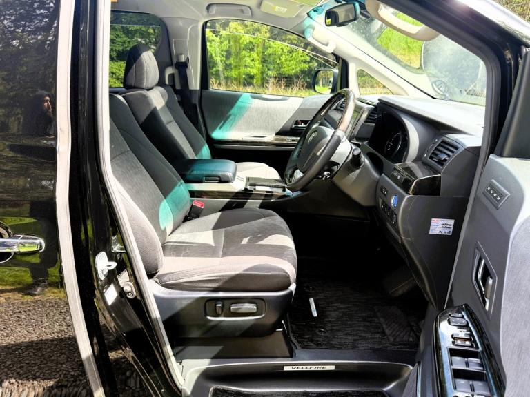 FRESH IMPORT. UK STOCK, READY TO DRIVE AWAY, ULEZ COMPLIANT, TOP OF THE RANGE. YEAR 2014 TOYOTA VELLFIRE. 2.4 PETROL/ELECTRIC HYBRID. AUTO. USS AUCTION GRADE 4B. BOTH ELECTRIC SLIDING DOORS, ELECTRIC SUNROOF, PARKING SENSORS, SERVICE,MPH CONVERSION,UNDER SEAL IS INCLUDED IN THE PURCHASE PRICE. ALL UK TAXES AND VAT HAS BEEN PAID BY US. COMES WITH FULL UK REGISTRATION DOCUMENTS, ONE YEAR MOT, SIX MONTHS WARRANTY ON ENGINE AND GEAR BOX ONLY. £345 A YEAR ROAD TAX NOT INCLUDED. WE DO TAKE PART EXCHANGE, WE DO ACCEPT ALL MAJOR CREDIT AND DEBIT CARDS, DELIVERY CAN BE ARRANGED. RING OR MAIL US FOR DETAILS.