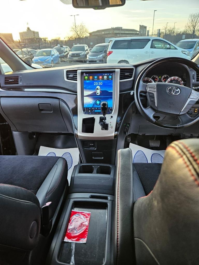 Carolina Motors is pleased to offer this beautifully upgraded Toyota Vellfire for sale. REG AF63 XHN Special Warranty Offer This car comes with 40Months Gold Warranty. (Engine, Gearbox, Electricals ) FREE AA - 12MONTHS BREAKDOWN COVER FREE £75 AA VOUCHER Beautifully UPGRADED Toyota Vellfire 2014 Golden Eyes 2 Edition - Sporty Look. Fresh Import from Japan. Original Mileage 72390 miles. Can be verified with auction sheet and Carvx report. Fresh MOT valid till NOV 2026. Low road tax for this vehicle category. 2.4L engine with Eco mode, Fuel efficient engine. ULEZ & CAZ free. Half Leather Seats with Alcantra Fabric. Alloy Wheels. Modellista Body Kit Fitted, Digital Rear Mirror. OPTIONAL ACCESSORIES INSTALLED WORTH - GBP 800 1. CAR RADIO UNITS REPLACED. FRONT - 12.1'' TESLA TYPE ANDROID SCREEN FITTED - CARPLAY/ANDROID AUTO. 2. ROOF - 15.6'' ANDROID TOUCH SCREEN FITTED. BOTH SCREENS CAN BE PLAYED INDIVIDUALLY. 3. EXTRA USB socket. OPTIONAL ACCESSORIES CAN BE FITTED AS BELOW. DIGITAL SPEEDOMETER CAN BE FITTED FOR £400 ) MODERN STYLE STEERING WHEEL CAN FIT FOR £350++ Full Engine Service done.(Original Toyota Parts) Gearbox service done. Full Valeting/polishing done. Front & Rear Fog lights. 7 Seater with Half leather Seats and Recliners. Perfect Tyres 2 KEYS PROVIDED( MORE EXTRA KEY CAN BE PROVIDED FOR £90 ) Additional Features. Alloy Wheels. Dual Zone Climate Control Air conditioning. Electric Sliding Door. Dome Lights. Tinted Windows, Push Start Stop Keyless drive and entry system. Rear View Camera. Wind deflectors. Foldable Electric Side Mirrors, All 4 Electric Windows. Front and Rear Parking Sensors, Cruise Control, Front and Rear Climate Control, and many more V5C is ready and car ready to go. Buyer will be the first owner to drive in UK. Car is in Peterborough PE1 area and can be seen any day. Feel free to contact anytime on 01733 639260 or whatsapp [Phone number removed] Please visit our website.. [Website URL removed],