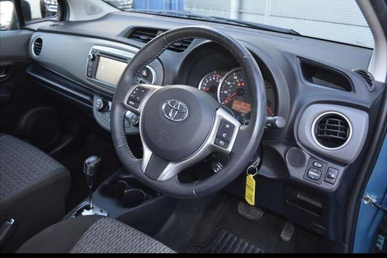 Toyota Yaris 1.3i 16V Icon + CVT Automatic 5Dr Registered May 2014 Warranted 48526 Miles With A Full Service History Full 12 Months MOT Road Tax Only £35 Per Annum. Full Pre Delivery Inspection In Our Workshop. 6 Months Comprehensive No Quibble In House Warranty Included. Finished In Unmarked Metallic Turquoise With Grey Chequered Cloth Trim. Power Steering, Electric Windows, Electric Door Mirrors, Digital Climate Control & Air Conditioning, Trip Computer, Cruise Control, Colour Reverse Camera, Multi Function Steering Wheel, Alloy Wheels, Remote Central Locking With Factory Alarm & Immobiliser. Part Exchange & Nationwide Delivery Available. Viewing By Appointment Only. Was Cat N Repaired ( Minor Panel Damage Only). Fully Repaired At Insurance Approved Bodyshop. Any Inspection Welcome. Features Include: , 12v socket, 15in alloy wheels - 5 twin-spoke, abs - anti lock braking system, air conditioning - climate control- dual zone, airbags - curtain, airbags - driver, airbags - driver knee, airbags - front passenger, airbags - front passenger cut-off switch, airbags - front side, alarm system, aux input, bas - brake assist system, bluetooth connectivity, bluetooth music streaming, body coloured door mirrors, bottle holders, bumpers - body coloured, bumpers - energy absorbing, child protection locks, clean air filter, collapsible steering column, collaspsible pedal support strut, cruise control, cupholder - front and rear, digital clock, door handles - body coloured, dusk sensor, ebd - electronic brakeforce distribution, electric power steering - eps, electric windows - front and rear, electric and heated door mirrors, front chrome trim, front fog lights, front grille black with chrome surround, front map lights, fully trimmed boot, headlights - follow me home, isofix child restraint system - 2nd row, interior tailgate pull handle, leather gear shift knob, leather handbrake lever, radio and cd player, rain sensing wipers, rear chrome trim, rear lights - led, rear parcel shelf - removable, rear seats 60-40 split folding, rear-view camera display on toyota touch, remote central locking, seat belt warning - driver, seat belt warning - front passenger, seat belt warning - rear, seats - anti-whiplash design, seats - drivers height adjustment, seats - front back pockets - passenger, speakers x6, speed limiter, steering column lock, steering wheel - audio controls, steering wheel - leather trimmed, tilt and telescopic adjustable steering wheel, touch
