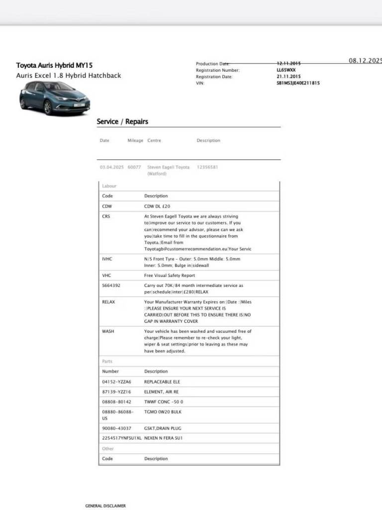 Buy the full report for guaranteed data accuracy, outstanding finance, valuation, milage check & VIN match for £9.99 (normally £19.99)