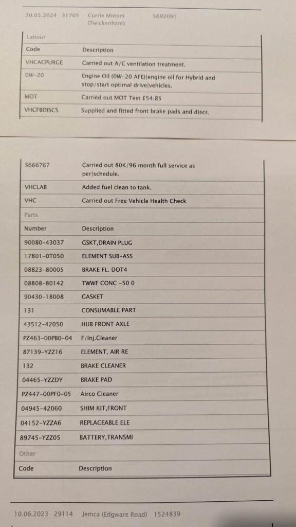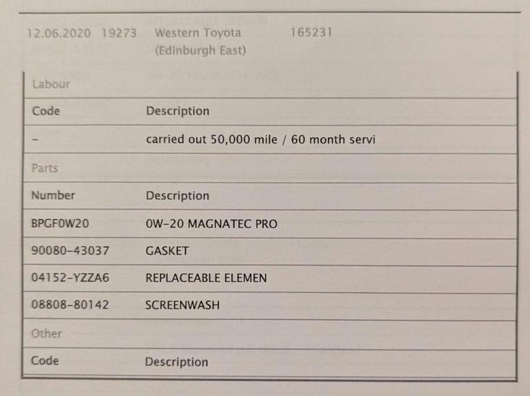 Full Service History; Safety Belt Pretensioners