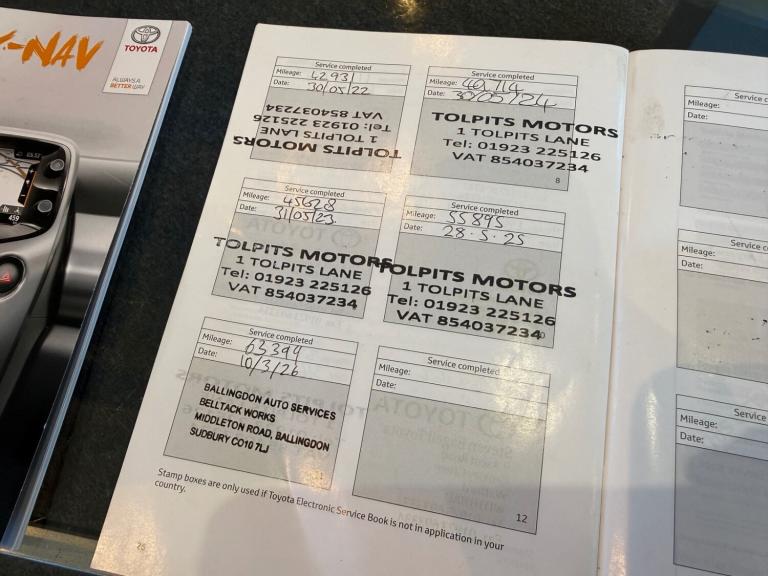 Chartwell's are pleased to offer this lovely low mileage Toyota Aygo 1.0 VVT-I x-pression for sale. Only 2 previous owners from new. ULEZ Compliant. The car comes complete with a full service history accompanied by a fully stamped service book as shown in our photos. The last service was on 10/03/2026/2026 at 63,399 miles. This car is chain driven with no Cambelt change to worry about. The current MOT runs until 09/03/2027 passing with 0 advisories. Finished in nice metallic grey the car is in nice condition throughout. A very cheap car to run and own with only £20 per year road tax and excellent all-round fuel economy. What every one wants in the current market, a small, 5 door, petrol, low mileage car in this price range. High spec rare model offering some great features. Drives superb. With all the history, low mileage and ownership it's the perfect buy. High spec includes the following, Metallic Paint, 16"" Alloys, Cloth seats, Heated seats, Heated steering wheel, Automatic Lights, Fog lights, Remote locking, Air conditioning (Working Cold), Electric windows, Electric heated mirrors, Steering wheel controls, Rear ISOFIX, Radio - CD Player - AUX and much more. We have the full book pack and 2 remote locking keys. The car is HPI clear with the printout available. We are an approved AA dealer. All our cars come with free 12 months AA breakdown cover. Drive-away insurance is now offered through the AA. Our cars (not commercial) come with a 3-month/ 3000 miles warranty as standard unless explicitly sold as a trade sale. We do offer extended warranties through WarrantyWise for 6 months - 2-year terms. For more information please call us.