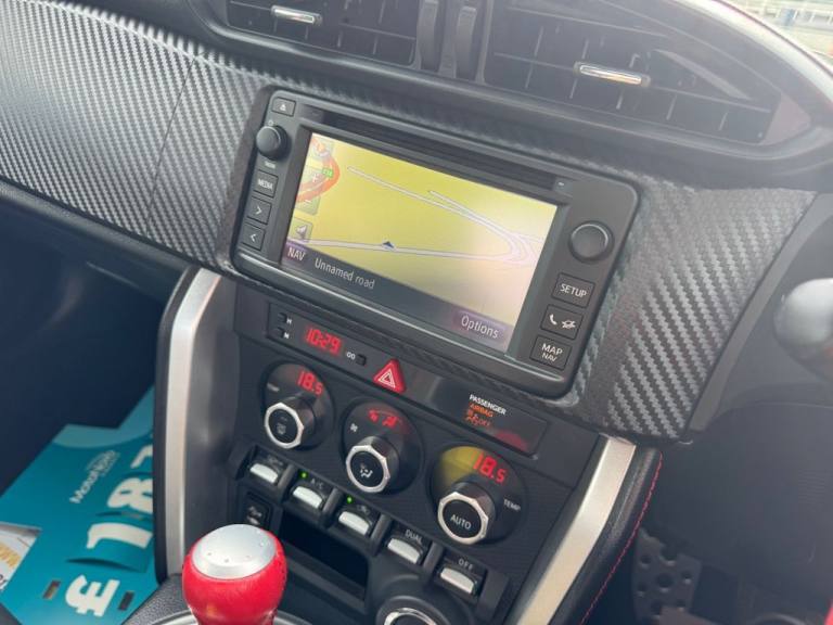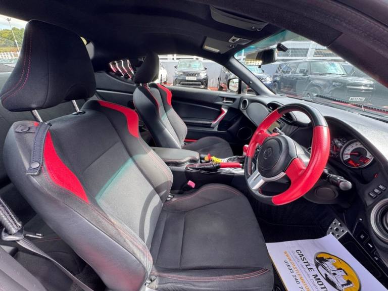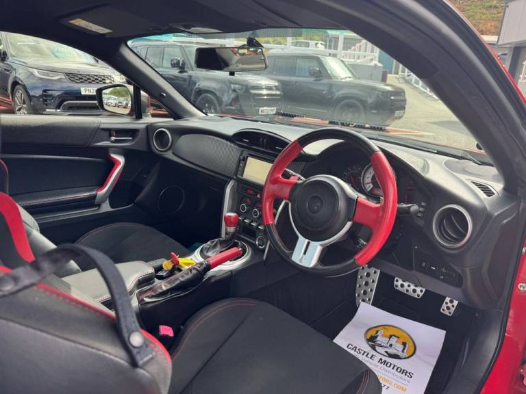 GT86 2.0 D-4S Boxer Auto Coupe. Bright Pure Red with Black Alcantara Suede interior stitched Red, with Red leather accents, twin exit Cobra exhaust, twin spoke alloys, rear spoiler, Carbon bumper protection, dual climate control AC, VSC Sport Setting, adjustable driving modes, cruise control , Carbon Fibre dipped mirrors and vents, Carbon Fibre interior finish and more. Only 38,000 miles with service history and freshly serviced before sale. Must be seen All of our vehicles are ready for same day drive away. CASTLE MOTORS purpose-built showroom & forecourt has a wide range of cars for sale, including some of the worlds most prestigious automobiles. Founded in 1972, we are open 7 days a week. All of our vehicles are presented to the very highest standards possible having gone through our own comprehensive multi-stage preparation. Supplied finance figures are only a guide. Every effort has been made to ensure the accuracy of the above info but errors can occur please check with our sales team. .17in Alloy Wheels - 10 Spoke, 3-Spoke Leather Steering Wheel, ABS - Anti Lock Braking System, Airbags - Curtain, Airbags - Driver, Airbags - Driver Knee SRS, Airbags - Front Passenger, Airbags - Front Passenger Cut-Off Switch, Airbags - Front Side, Aluminium Sports Pedals, Aux Input, Aux-USB Connectivity for MP3 and iPod Connectivity, BAS - Brake Assist System, Bluetooth Connectivity, Bluetooth Music Streaming, Bumpers - Body Coloured, Cruise Control, Daytime Running Lights - LED, Door Courtesy Light, Door Handles - Body Coloured, Door Mirrors - Body Colour, Door Mirrors - Electrically Heated and Retractable, Double Wishbone Suspension - Rear, Dual Exhaust Pipe with Chrome Finish, Dual Zone Climate Control, Dusk Sensor, EBD - Electronic Brakeforce Distribution, Electric Power Steering - EPS, Floor Mats with GT86 Logo, Front Fog Lights, Front Map Lights, Front Power Windows, Front Wipers - Twin Speed and Fixed Intermittent, Headlight - Levelling Adjustment, Headlight Washers - Electrically Operated, Headlights - High Intensity Discharge, Illuminated Entry System, Keyless Entry System with Push Button Start, Leather Handbrake Lever, Leather-Alcantara - Black with Red Inserts, LSD - Limited Slip Differential, MacPherson Strut Front Suspension, Mud Flaps - Front and Rear, Paddle Shift, Pollen Filter, Pure Red, Push Button Start, Radio and CD Player, Remote Boot Release, Scuff Plates, Seats - Anti-Whiplash Design, Seats - Front Sport, Shark Fin Antenna, Side Impact Beams, Speakers x6, Steering Column - Tilt and Telescopic, Steering Column Lock, Sunvisor - Driver and Passenger with Cover and Light, Thatcham Category 1 Alarm System, Touch Screen - 6.1in, Toyota Touch Audio System, TPMS - Tyre Pressure Monitoring System, Traction Control - TRC, Transponder Key Engine Immobiliser, Trip Computer, Tyre Repair Kit, Vanity Mirrors - Driver and Front Passenger with Cover, VSC - Vehicle Stability Control