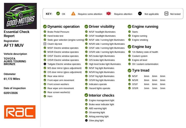 All our cars have an option to extend the standard 30 day engine and gearbox warranty to a nationwide parts and labour warranty which we will be happy to discuss with you.