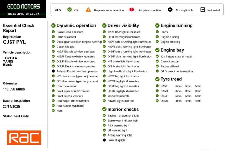 All our cars have an option to extend the standard 30 day engine and gearbox warranty to a nationwide parts and labour warranty which we will be happy to discuss with you.