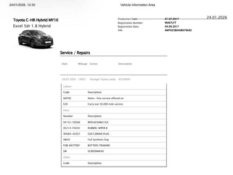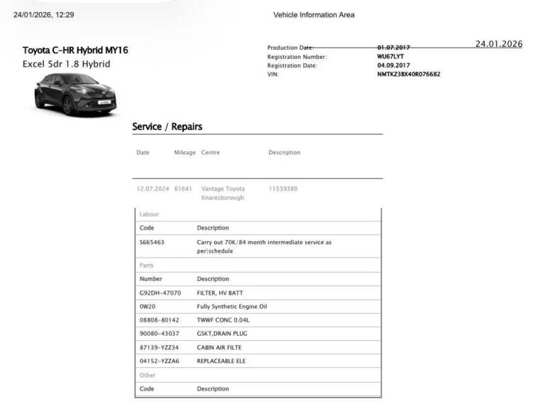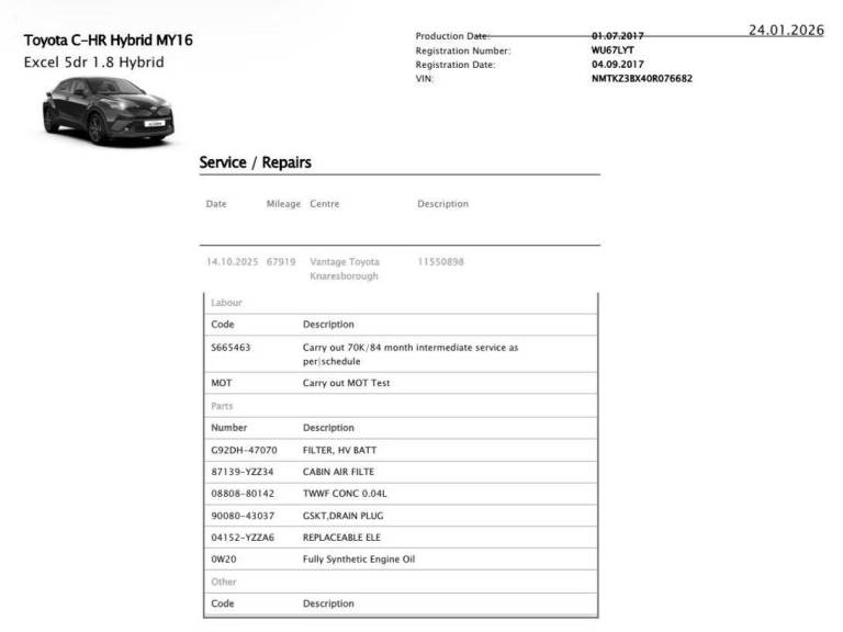 Posting for 9+ years2017 Toyota C-HR 1.8 VVT-h Excel SUV 5dr Petrol Hybrid CVT Euro 6 (s/s) (122 ps) SUV Hybrid Autom...