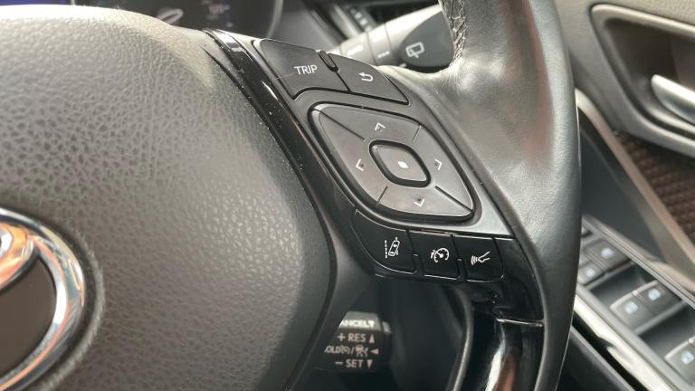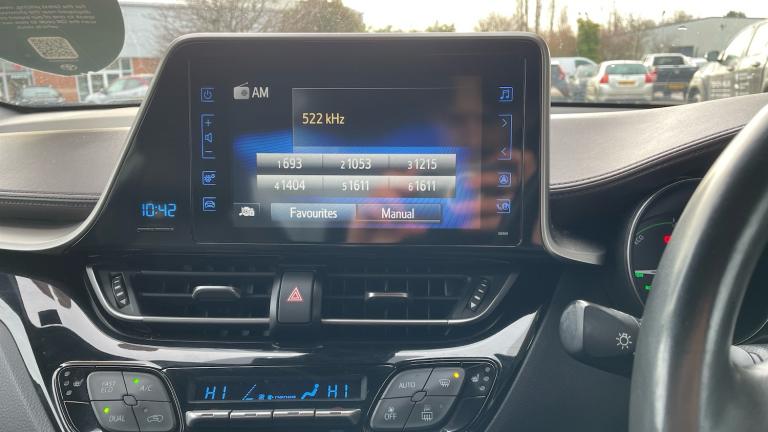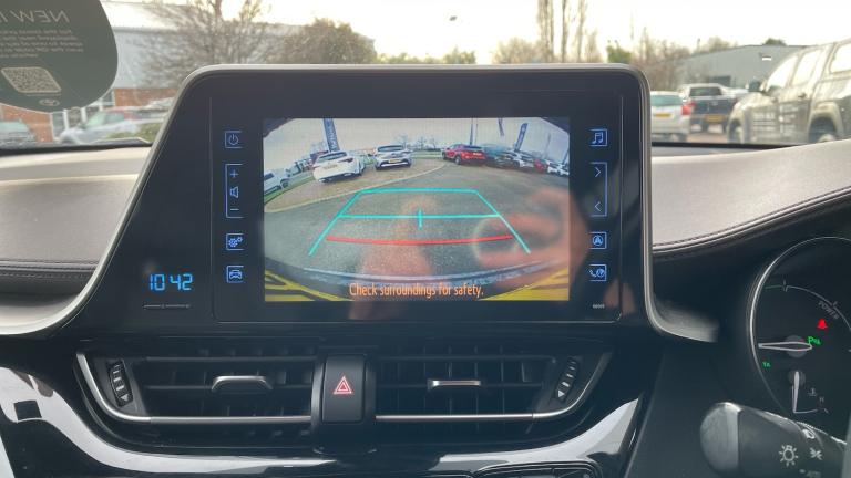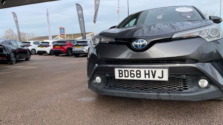Experience the perfect blend of style, efficiency and advanced technology with this 2018 Toyota C-HR Excel 5dr 1.8 Hybrid is a standout compact SUV designed for modern driving.Finished in the premium Excel trim, this C-HR delivers a bold, coupe-inspired design with sharp lines, striking LED headlights and distinctive alloy wheels that ensure it turns heads wherever it goes. Inside, the cabin feels equally impressive, offering a high-quality finish, comfortable seating and a driver-focused layout that makes every journey enjoyable.Powered by Toyota's renowned 1.8 Hybrid system, this C-HR offers smooth, quiet performance combined with excellent fuel efficiency and low emissions. The hybrid drivetrain seamlessly switches between petrol and electric power, making it ideal for both city driving and longer motorway journeys. Automatic transmission comes as standard, ensuring a relaxed and effortless drive.The Excel specification is packed with premium features, including leather and suede upholstery, heated front seats, dual-zone climate control, and keyless entry and start. The advanced infotainment system includes a touchscreen display with satellite navigation, Bluetooth connectivity, DAB radio, and smartphone integration to keep you connected on the move.Safety is a top priority, and this model comes equipped with Toyota Safety Sense, including adaptive cruise control, lane departure warning, pre-collision system, and road sign assist, giving you confidence and peace of mind every time you drive.Practical yet stylish, efficient yet engaging, the 2018 Toyota C-HR Excel Hybrid is an excellent choice for drivers seeking reliability, low running costs and premium comfort in a distinctive package. A superb all-rounder that truly stands out in its class..Rear wiper, ABS+EBD+Brake assist, Vehicle Stability Control (VSC), Bluetooth system, PAS, Push button starter, Lights on warning, Auto dimming rear view mirror, DAB Digital radio, Rear spoiler, Front fog lights, Dual Zone automatic air conditioning, Cloth/leather upholstery, Illuminated entry system, Front and rear curtain airbags, Heated front seats, Immobiliser, Driver/passenger sunvisors and illuminated vanity mirrors, Tyre repair kit