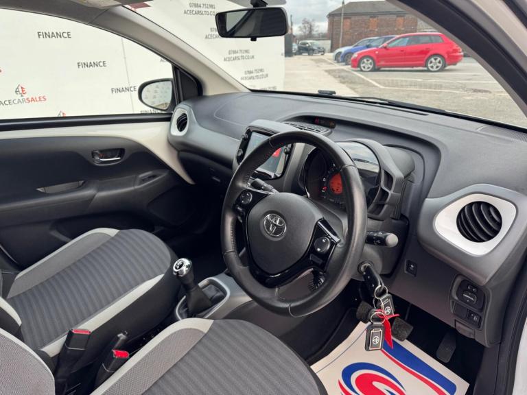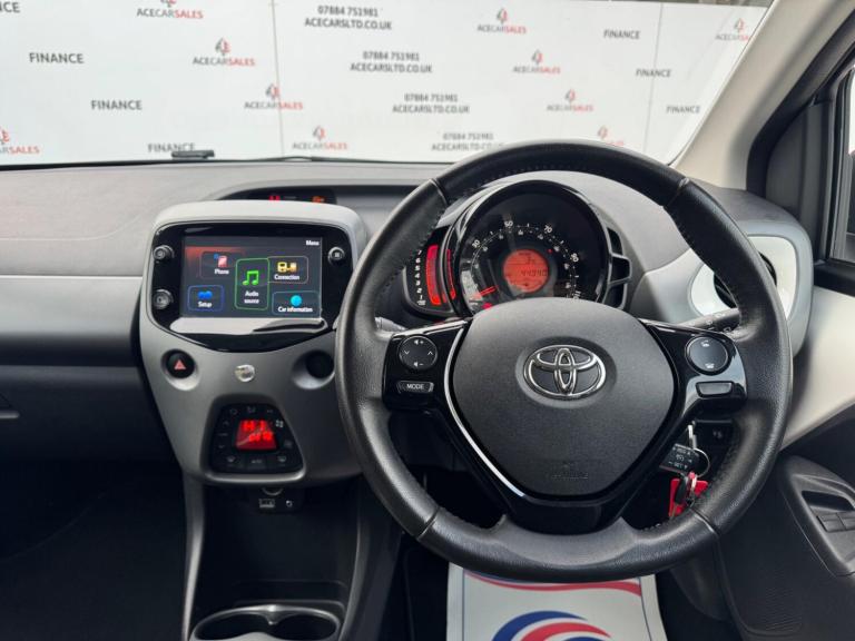 FINANCE & PCP AVAILABLE, COMPLEMENTARY WARRANTY INCLUDED, GOOD CONDITION, WE TAKE PART EXCHANGE! Toyota AYGO 1.0 VVT-i x-trend Euro 6 5dr 5 Speed Manual. HPI Clear, Full Service History, 10 Months MOT, 1 Owner, 2 Keys, EURO6 ULEZ Compliant, Fuel Consumption 57.3MPG, Insurance Group 9, Cruise Control, Reverse Camera, Electric Power Steering, Hill Start Assist Control, Traction Control, Anti Lock Braking System, Tyre Pressure Warning System, Auto Headlights, Projector Halogen Headlight with LED Tracer Lights, Daytime Running Lights - LED and Rear LEDs, Headlights - Electronic Levelling, Front Fog Lights, Electric Windows, Electric Mirrors, Automatic Climate Control, Air Conditioning, Front And Rear Screen Demister, Colour Touchscreen Media Interface, On Board Computer, Smartphone Integration - Apple Carplay/Android Auto, Bluetooth, Radio, DAB, AUX, USB, Telephone Connection, Voice Control, Multifunctional Steering Wheel, Cloth Design Seats, Privacy Glass, Exterior Badging, Black/Red Body Design Trims, 15inch Alloy Wheels.ALL VEHICLES ARE FULLY INSPECTED PRIOR TO SALE. The bodywork is in excellent condition and the car drives superbly. We welcome you to view and test drive our showroom condition vehicles. Wish to make this purchase hassle free with ease? Feel free to enquire about our competitive Financial packages. We can assist you in securing finance for your New car with ease- regardless of your credit status/history. All of our cars are regularly price checked to be amongst the most competitive on the market! We include a COMPLEMENTARY WARRANTY on all our vehicles. Ace Car Sales Heywood is a well established Family run business with 30+ years of experience in the Motor trade industry! We pride ourselves on offering a personalised service to suit your needs. Visit our website for more information on our vehicles - [Website URL removed], 'Buy With Confidence At Ace Car Sales' Be our next happy customer today! [Website URL removed]