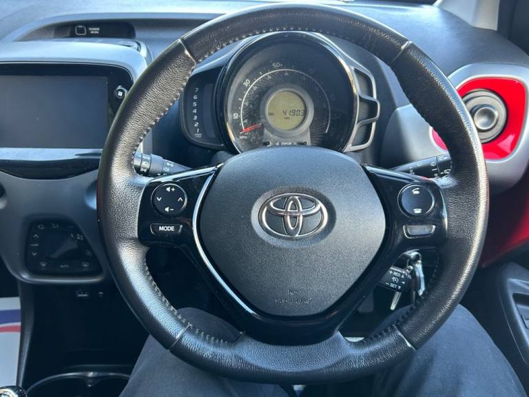 This 2019 Toyota AYGO VVT-i x-trend is presented with a clear vehicle history check, offering peace of mind for its next owner. This stylish hatchback features a responsive 1.0L petrol engine and meets Euro 6 emissions standards. Inside, youll find the 7in x-touch Multimedia System, complete with Bluetooth connectivity, which seamlessly integrates with your smartphone via Apple CarPlay and Android Auto. For added convenience, this AYGO also boasts automatic headlights and a reversing camera to assist with parking. The AYGO x-trend stands out with its low insurance group, making it an economical choice for many drivers. Furthermore, its low CO2 emissions highlight its efficiency, indicating it is a more environmentally conscious option compared to many other vehicles in its class. These factors, combined with its user friendly technology and practical features, make this Toyota AYGO a compelling proposition. + £49 admin fee. .15in Alloy Wheels - 8 Spoke - Black Machined-Faced, 3-Spoke Leather Steering Wheel, 7in x-touch Multimedia System, ABS - Anti Lock Braking System, Auto Headlights, Automatic Air Conditioning, Bluetooth Connectivity, Chrome Insert on Gear Shift, Chrome Inside Door Handles, Clean Air Filter, Cupholder - Front and Rear, DAB Digital Radio, Daytime Running Lights - LED and Rear LEDs, Decal Kit - Front and Rear Bumper and Side Sills, Door Handles - Body Coloured, Door Mirrors - Body Colour, Electric Front Windows, Electric Power Steering - EPS, Electrically Adjustable Heated Door Mirrors, Emergency Brake-Light Signal - EBS - Hazard Type, Front 12V Power Outlet, Front Fog Lights, Front Passenger Airbag On-Off Switch, Front Seat Belt Reminder, Glovebox, HAC - Hill Start Assist Control, Headlights - Electronic Levelling, Instrument Panel - Body Coloured, Integrated Rear Spoiler, ISOFIX Fixing Points, Leather Gear Shift, Manual Rear View Mirror, Manual Tilt Steering Wheel, Projector Halogen Headlight with LED Tracer Lights, Rear Headrests x2, Rear Privacy Glass, Rear Seat Belt Reminder, Rear Window Demister, Recline and Slide Adjustment - Driver and Front Passengers, Red Pop, Reversing Camera, Seat Belt - Pre-Tensioners and Force Limiters, Seats - 50-50 Split Folding Rear, Seats - Drivers Height Adjustment, Smartphone Integration - Apple Car Play and Android Auto, Space Saver Spare Wheel, Steering Wheel - Audio and Telephone Controls, Storage - Front Door Pockets, Storage - Rear Door Pockets, Storage Pocket in Central Console, Supplemental Restraint System - SRS - Airbags - 6 Airbags, Tonneau Cover, Tyre Pressure Warning System, Unique Design Air Vents with Colour Surround, USB Connection, VSC - Vehicle Stability Control