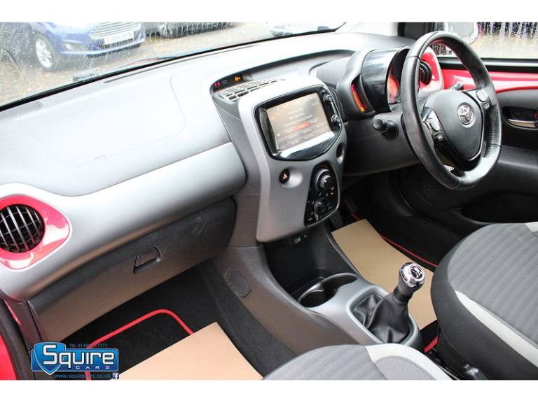 7in x-touch Multimedia System, Bluetooth Connectivity, DAB Digital Radio, Front 12V Power Outlet, USB Connection, Reversing Camera, Tyre Pressure Warning System, 15in Steel Wheels, Chrome Inside Door Handles, Door Handles - Body Coloured, Door Mirrors - Body Colour, Electric Front Windows, Electrically Adjustable Heated Door Mirrors, Integrated Rear Spoiler, Rear Window Demister, Space Saver Spare Wheel, Daytime Running Lights - LED and Rear LEDs, Headlights - Electronic Levelling, Projector Halogen Headlight with LED Tracer Lights, 3-Spoke Leather Steering Wheel, Chrome Insert on Gear Shift, Clean Air Filter, Cupholder - Front and Rear, Glovebox, Leather Gear Shift, Manual Air Conditioning, Manual Rear View Mirror, Manual Tilt Steering Wheel, Rear Headrests x2, Recline and Slide Adjustment - Driver and Front Passengers, Seats - 50-50 Split Folding Rear, Seats - Drivers Height Adjustment, Steering Wheel - Audio and Telephone Controls, Storage - Front Door Pockets, Storage - Rear Door Pockets, Storage Pocket in Central Console, Tonneau Cover, Unique Design Air Vents with Colour Surround, Electric Power Steering - EPS, ABS - Anti Lock Braking System, Emergency Brake-Light Signal - EBS - Hazard Type, Front Passenger Airbag On-Off Switch, Front Seat Belt Reminder, HAC - Hill Start Assist Control, ISOFIX Fixing Points, Rear Seat Belt Reminder, Seat Belt - Pre-Tensioners and Force Limiters, Supplemental Restraint System - SRS - Airbags - 6 Airbags, VSC - Vehicle Stability Control.*All test drives by appointment*2019 Toyota Aygo 1.0 x-play edition finished in fire red. This five-door hatch is very well-equipped with 7"" touch multimedia screen, DAB, Bluetooth, reversing camera, and much more! Boasting high MPG and low insurance. Great little car to take you on any adventure! Comes with a full service history all main dealer until the last service which shall be completed by us for the new lucky owner! Surprisingly roomy five-door hatchback that offers value and practicality in the marketplace! Come and snap it up!