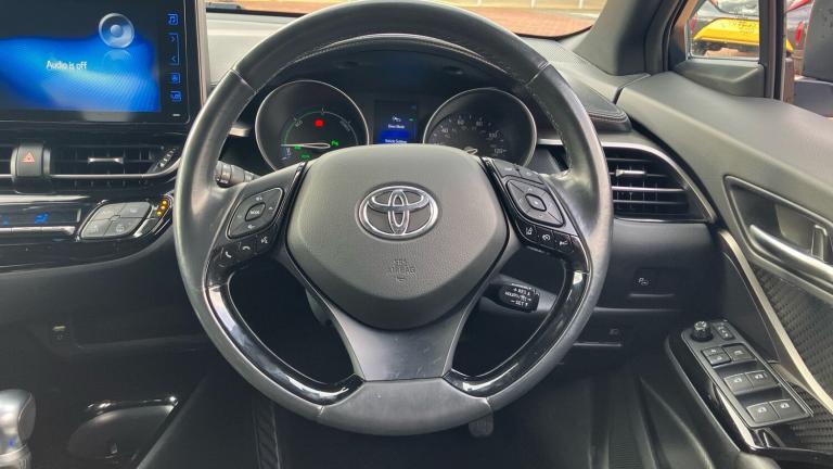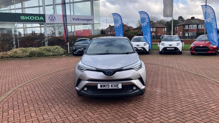 This 2019 Toyota C-HR VVT-h Dynamic boasts exceptionally low mileage for its age, having covered just 40,500 miles. This stylish hatchback features a 1.8L petrol hybrid engine, meeting Euro 6 emission standards. The Dynamic trim level comes equipped with Toyota Safety Sense, including adaptive cruise control, and LED headlights with sequential indicators for enhanced visibility. Inside, you'll find dual-zone automatic air conditioning for personalised comfort and Bluetooth connectivity for seamless audio and calls. The included Parking Pack, with front and rear sensors, makes manoeuvring in tight spaces effortless.This Toyota C-HR offers significant advantages, indicated by its impressive fuel economy of 60 mpg, which is better than many similar vehicles. Its low CO2 emissions and low insurance group also contribute to lower running costs, making it an economical choice. These highlights demonstrate how this C-HR provides a more efficient and cost effective driving experience compared to other cars in its class..Intermittent wipe, Electronic parking brake, Vehicle Stability Control (VSC), Voice recognition, Electric power steering, Push button starter, Road sign assist - RSA, Body colour door mirrors, Silver dash inserts, DAB Radio (Digital Audio Broadcasting), Hard tonneau cover, Automatic headlights, Pollen filter, Leather gearshift, Driver and front passenger personal light, Parking pack - C-HR, Front passenger airbag on/off switch, Driver + front passenger electric lumbar support, Smart entry + Smart start, Driver/passenger sunvisors and illuminated vanity mirrors, 18"" 5 double spoke matt black alloy wheels, Tyre repair kit