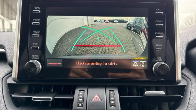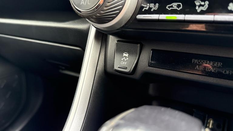 ..7'' colour TFT display, Adaptive cruise control with lane trace assist, Adjustable speed limiter, Bluetooth system, Cyclist Detection, Drive mode selector, eCall emergency call system, ECO-driving indicator, Electric power steering, Hybrid system indicator, Lane departure warning system, Lights on warning, Night Time Pedestrian Detection, Pedestrial detection, Power boot opening and closing, Rear parking camera, Rear parking sensors, Remote boot door release in cabin, Tachometer, Touch 2 Go navigation system, Traffic sign recognition, Trip computer, Voice control system, Vehicle Stability Control (VSC), 6 speakers, 8'' Multimedia display touch screen, Auxiliary socket for external MP3 player, DAB audio, Steering wheel mounted audio controls, Toyota touch media system, USB connection, Auto dimming interior mirror, Auto high beam, Automatic headlamp levelling, Automatic headlights, Automatically retractable door mirrors, Black roof rails, Body colour door handles, Body colour door mirrors, Body colour rear spoiler, Body coloured bumpers, Body coloured Shark-fin antenna, Electric adjustable door mirrors, Emergency brake-light signal (EBS), Follow me home headlights, Front fog lights, Headlight cleaners, Heated door mirrors, LED daytime running lights, LED High mounted stop lamp, LED rear lights, Meshed upper front grille, Parabola LED headlights, Power front windows, Power rear windows, Privacy glass, Rear screen wiper - intermittent, Rear windscreen defogger, Silver front under-run, Silver rear under-run, Trailer sway control, Turning signal integrated indicators in door mirrors, 3 rear headrests, 60/40 split fold rear seat back, Boot light, Clean air filter, Cloth upholstery, Driver and front passenger personal light, Driver and front passenger Whiplash Injury Lessening seats, Driver and passenger sunvisors with illuminated vanity mirrors, Dual sided deck board in boot, Dual zone automatic air conditioning, Floor mats, Folding rear centre armrest, Front and rear bottle holders, Front centre armrest, Front footwell lights, Front headrests, Front/rear roof mounted assist grips, Grey roof lining, Isofix child seat preparation, Leather gear shift with chrome surround, Manual telescopic and tilt 3-spoke leather steering wheel with Chrome insert, Manually height-adjustable sliding and reclining driver seat, Manually reclining and sliding front passenger seat, Pollen filter, Rear coat hooks, Rear door armrests, Rear passenger air vents, Reclining rear seats,