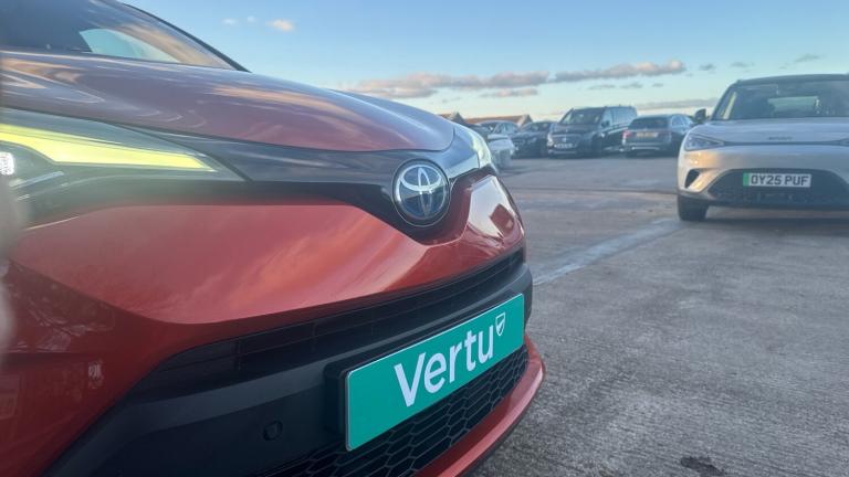 Here is a smart and thoroughly considered example of Toyota’s bold hybrid thinking. This 2020 Toyota C HR 2.0 VVT h Orange Edition blends eye catching design with genuine everyday usability, all backed up by proven hybrid efficiency and a strong service record. With just two owners and last serviced by Toyota in March 2025, it presents in excellent condition and is ready to drive away with confidence.Finished in striking Scorched Orange with a contrasting black roof, this Orange Edition stands out for the right reasons. The 2.0 litre self charging hybrid delivers smooth performance and impressive fuel economy, especially in urban driving where electric running helps reduce fuel consumption and emissions. The automatic transmission makes progress effortless and relaxed, ideal for commuting or longer journeys.Technology is a real highlight. Satellite navigation keeps journeys simple and stress free, while push button start adds everyday convenience. The rear camera and front and rear parking sensors make tight spaces far easier to manage, improving safety and confidence at low speeds. Cruise control and climate control support comfortable and economical motorway driving.Inside, the cabin feels both modern and welcoming. Electric black heated leather seats and a heated steering wheel provide comfort throughout the year, while the JBL sound system delivers excellent audio quality for music and calls alike. The elevated driving position improves visibility, adding an extra layer of reassurance on busy roads.Riding on 18 inch black alloy wheels, the C HR balances sharp styling with a composed and comfortable drive. Advanced safety systems typical of Toyota help protect occupants and other road users, making this a sensible choice for families and professionals alike.This vehicle is available from Vertu Beaconsfield, where every car is prepared to a high standard. It includes a three month complimentary warranty with the option to extend at extra cost, offering additional peace of mind..Air Conditioning, Climate Control, Metallic Paint, Cruise Control, Satellite Navigation, Alloy Wheels, Leather Seats, Heated Seats, DAB Radio, Bluetooth, Parking Sensors, Stop Start, USB, Park Assist, Electric Seats, Adaptive cruise, Keyless Entry-Push Button Start, Rear Camera, Auto Lights, Electric Folding Mirrors, Lane Departure, Lane Keeping Assist, Pre Crash Prevention& Rain Sensors, Privacy glass, ABS+EBD+Brake assist, Vehicle Stability Control (VSC), Voice recognition, Electric power steering, Remote boot door release in cabin, Trip computer, Body colour door mirrors, Black lower dashboard, DAB Radio (Digital Audio Broadcasting), Metallic paint, Automatic headlights, Pollen filter, Front cupholders, Illuminated entry system, Leather pack - C-HR, Rear door child safety locks, Front sports seats, Immobiliser, Light on driver sun visor, 18"" 5 double spoke matt black alloy wheels with matt black centre cap, Tyre repair kit