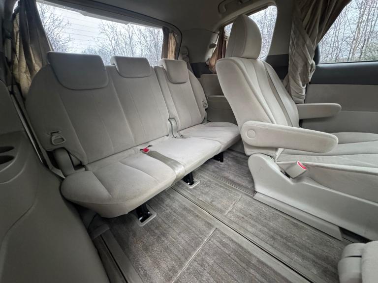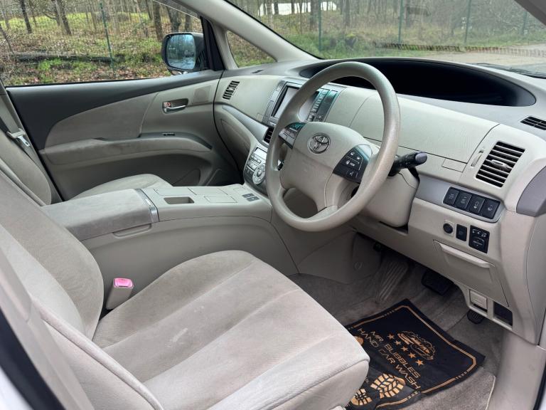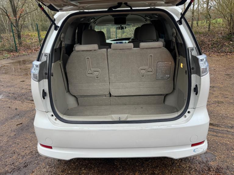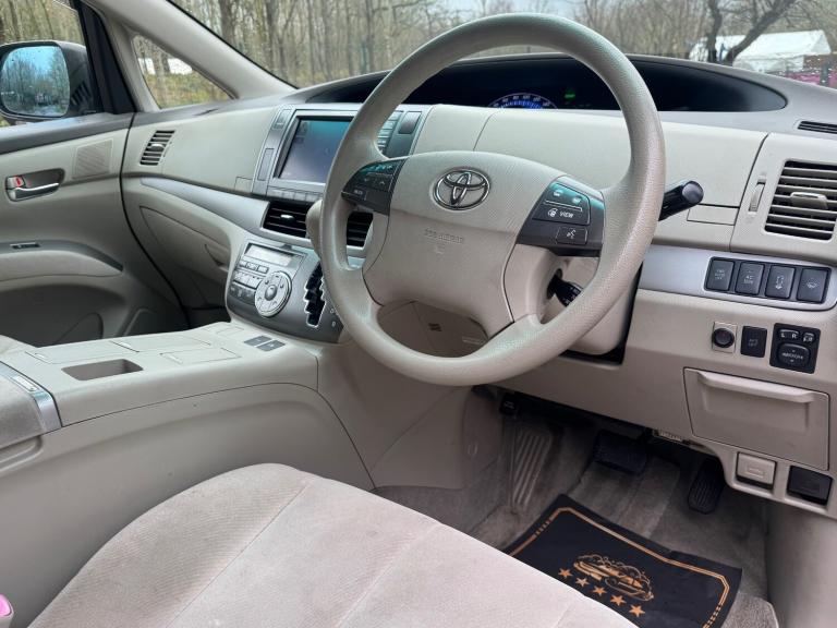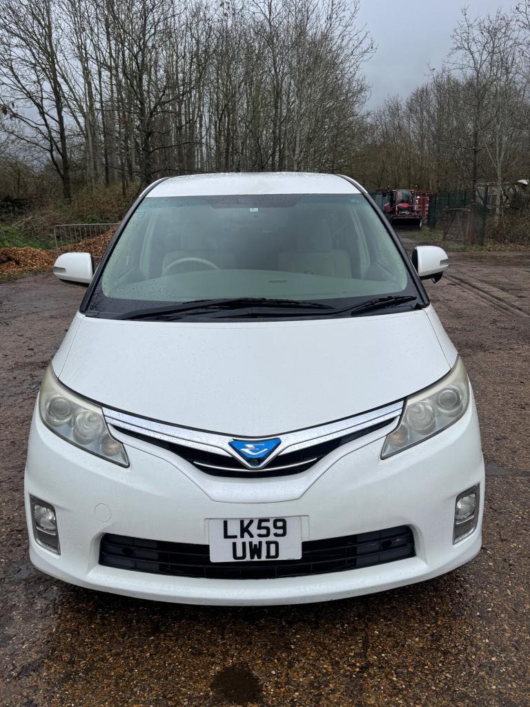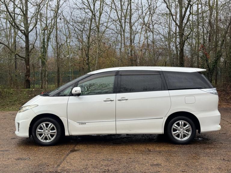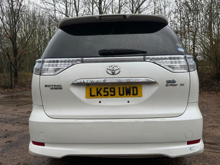 Toyota Estima Hybrid E Four X, third generation model, Japanese import registered in the UK under LK59 UWD. This seven seat MPV is powered by a 2.4 litre petrol hybrid engine with engine code 2AZ FXE, producing a combined output of approximately 187 horsepower. Power is delivered through a CVT automatic transmission with Toyota E Four electronic all wheel drive system. The vehicle features a five door body style with a wheelbase of 2950 mm, offering strong interior space and practicality. Standard E Four X specification typically includes electric sliding doors, automatic climate control, keyless entry and start, reversing camera, cruise control, alloy wheels, and a hybrid energy monitoring display. The vehicle is designed to provide a balance of comfort, efficiency, and all weather capability, making it suitable for family and long distance use.