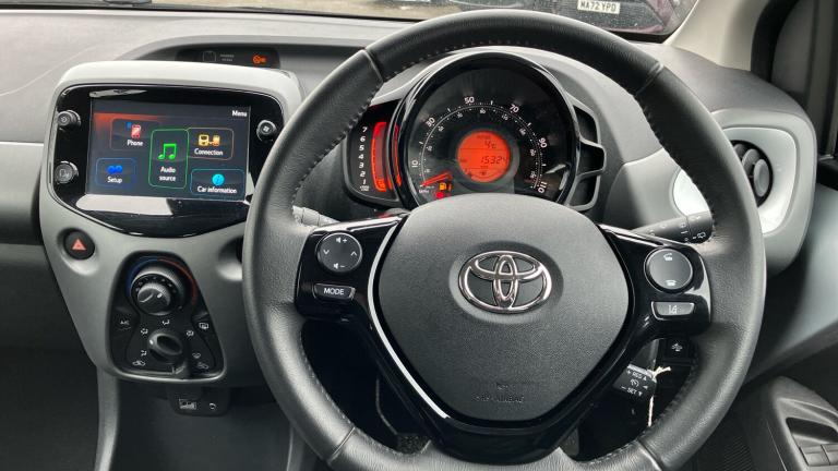 Powered by Toyota’s proven 1.0 VVT-i petrol engine, the Aygo offers smooth performance with excellent fuel efficiency and low running costs. Its compact size makes it perfect for urban driving and tight parking, while still being comfortable and stable on longer journeys.This X-Play model comes well equipped, featuring Toyota Safety Sense, which includes lane departure alert, pre-collision system and road sign assist, adding peace of mind on every drive. Inside, the car benefits from a modern touchscreen infotainment system with Bluetooth connectivity, DAB radio and smartphone integration, making it easy to stay connected on the move. Additional features include air conditioning, steering wheel controls, electric windows and a reversing camera for added convenience..Air Conditioning, Alloy Wheels, Bluetooth, Low Mileage, Full Service History, Rear Camera, Auto Lights& Pre Crash Prevention, Electric front windows, Green tinted glass, Rear wiper, Heated rear windscreen, 2 speed wipers/variable intermittent/mist function, Manually dimming rear view mirror, ABS, ESP, Emergency brake assist, Hill start assist, Collision mitigation braking system, Vehicle Stability Control (VSC), Bluetooth system, Smartphone integration powered by pioneer compatible with Apple CarPlay and Android Auto, DCM - Data Communication modules, Electric power steering, Lane departure warning system, Speed limiter, Reversing camera, Start and stop, Lights on warning, Digital clock, Fuel indicator with low level warning, 7"" touch screen, Analogue tachometer, Emergency call service, Heated door mirrors, Body colour door mirrors, Electric adjustable door mirrors, Air vent surround in body colour, Multimedia System, iPod connection, DAB Digital radio