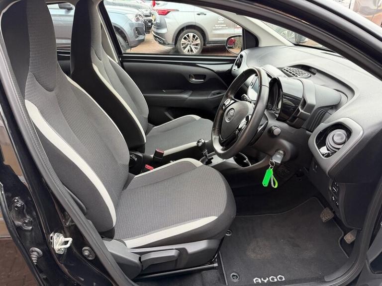 Bold Black, 7in x-touch Multimedia System, DAB Digital Radio, Front 12V Power Outlet, Smartphone Integration - Powered by Pioneer, USB and Aux Connection, Reversing Camera, Tyre Pressure Warning System, 15in Steel Wheels, Chrome Interior Door Handles, Door Handles - Body Coloured, Door Mirrors - Body Colour, Electric Front Windows, Electrically Adjustable Heated Door Mirrors, Integrated Rear Spoiler, Rear Window Demister, Space Saver Spare Wheel, Daytime Running Lights - LED and Rear LEDs, Headlights - Electronic Levelling, LED Rear Brake Lights, Projector Halogen Headlight with LED Tracer Lights, 3-Spoke Leather Steering Wheel, 4 Seat Capacity, Body Coloured Side Air Vent Surround, Chrome Insert on Gear Shift, Clean Air Filter, Cupholder - Front and Rear, Glovebox, Leather Gear Shift, Manual Air Conditioning, Manual Rear View Mirror, Manual Tilt Steering Wheel, Rear Headrests x2, Recline and Slide Adjustment - Driver and Front Passengers, Seats - 50-50 Split Folding Rear, Seats - Drivers Height Adjustment, Steering Wheel - Audio and Telephone Controls, Storage - Front Door Pockets, Storage - Rear Door Pockets, Storage Pocket in Central Console, Tonneau Cover, Unique Design Air Vents with Colour Surround, Vanity Mirror on Driver and Passengers Sun Visor, Electric Power Steering - EPS, ABS - Anti Lock Braking System, Emergency Brake-Light Signal - EBS - Hazard Type, Force Limiters on Rear Seatbelts, Front Passenger Airbag On-Off Switch, Front Seat Belt Reminder, HAC - Hill Start Assist Control, ISOFIX Fixing Points, Rear Seat Belt Reminder, Seat Belt - Pre-Tensioners and Force Limiters, Supplemental Restraint System - SRS - Airbags - 6 Airbags, Toyota Safety Sense, VSC - Vehicle Stability Control.This 2021 Toyota AYGO VVT-i x-play boasts exceptionally low mileage for its age and benefits from a full Toyota service history. This Euro 6 compliant model is powered by an efficient 1.0L petrol engine. Inside, you'll find manual air conditioning, a 7in x-touch multimedia system with Bluetooth, and smartphone integration powered by Pioneer, including Android Auto and Apple CarPlay. Maneuvering is made easier with the integrated reversing camera and rear parking assistance.The AYGO x-play stands out with its impressive fuel economy, achieving 54 mpg, which indicates it is more economical than many similar vehicles. Furthermore, its low insurance group and low CO2 emissions highlight its cost effectiveness and environmental consideration, making it a sensible choice for many drivers.