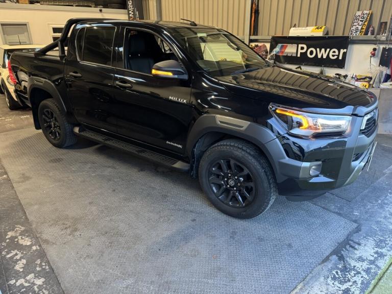 13500 miles. Toyota Hilux invincible 2.8 diesel auto 71 reg 2021 only 13000 miles full dealer service history black paintwork and black full leather heated electric seats Satalalite navigation media Bluetooth Apple CarPlay leather multi function steering wheel with adaptive cruise control side steps black alloy wheels lane assist rain sensor wipers pre collision assist detection auto headlights led daytime running lights electric heated mirrors reverse camera and parking aid system tow package black roll bar and lockable rear load shutter cover only had light use not abused or worked been a private vehicle road sign recognition Digital DAB radio lane departure assistance interior rubber floor mats cup holders arm rests front and rear headrests ambient lighting air conditioning dual zone digital climate control jbl premium sound system body colour bumpers fog lights privacy glass follow me home headlights headlight washers LED projection headlights mud flaps Trailor sway control system 60/40 split rear folding seats carper covered floor heated steering wheel lockable glovebox isofix child seat protection alarm immobiliser system auto limited slip differential down hill assist control hill start assist