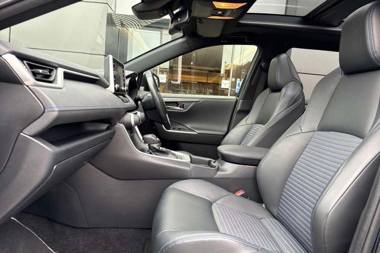 TOYOTA SERVICE HISTORY**, **6 MONTHS ASSURED WARRANTY**, BLUE EXTERIOR WITH 18 INCH GLOSS BLACK ALLOY WHEELS, REVERSE CAMERA, SLIDING PANORAMIC SUNROOF WITH BLIND, DUAL ZONE CLIMATE CONTROL, ELECTRIC ADJUSTABLE DRIVERS SEAT, HEATED FRONT SEATS, AUTOMATIC GEARBOX, 4 SELECTABLE DRIVING MODES - TRAIL, ECO, SPORT AND EV MODE, SATELLITE NAVIGATION, DAB RADIO, BLUETOOTH CONNECTIVITY, ANDROID AUTO AND APPLE CARPLAY, 5X USB PORTS, ELECTRIC ADJUSTABLE AND FOLDING MIRRORS WITH BLIND SPOT ASSIST, ELECTRIC WINDOWS, CUP HOLDERS, ISOFIX CHILD SEAT FIXINGS, AUTO DIMMING INTERIOR MIRROR, KEYLESS ENTRY WITH PUSH BUTTON START, LANE ASSIST, ADAPTIVE CRUISE CONTROL, STEERING WHEEL CONTROLS, AUTOMATIC HEADLIGHTS, POWERED TAILGATE, TRACTION CONTROL, VOICE COMMANDS AND MUCH MORE. **You can rest assured with Harwoods Assured ** This car comes with a minimum of 6 months warranty, a thorough history check, comprehensive service history, and, in addition to that, the vehicle has been prepared by our manufacturer trained technicians. ***We are proud to be part of the Harwoods group, a family run business established in 1931. With 17 retailers within our group, we have access to over 1000 vehicles. So, if this isn't the car for you, please contact us and we will find the right one for you**