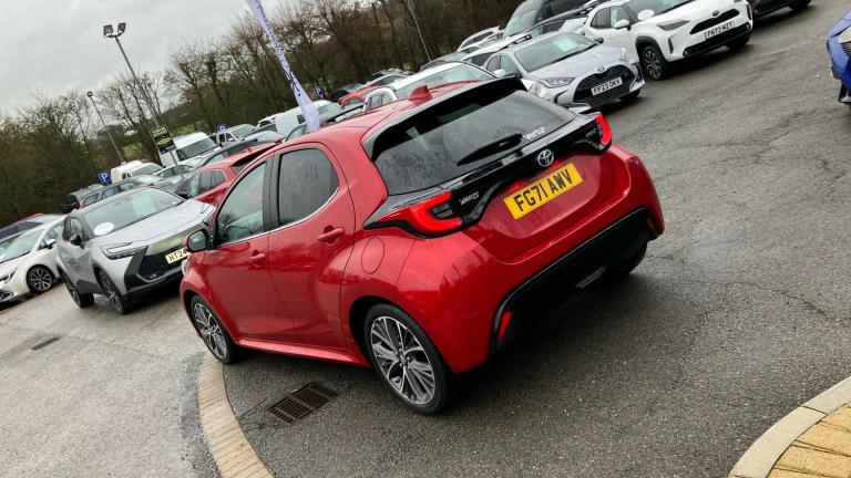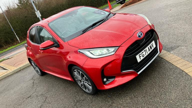 This stunning Toyota Yaris Excel Hybrid, registered in December 2021, is a highly specified supermini finished in the deep, vivid Scarlet Flare pearlescent paint.It is powered by the highly efficient self-charging hybrid system, driving through an automatic transmission. This award-winning powertrain delivers a spirited performance while achieving truly exceptional fuel economy and minimal emissions, requiring no external charging whatsoever.The Excel trim offers a premium experience, including striking alloy wheels, rear privacy glass, and Smart Entry with push-button start. The cabin is refined, featuring partial leather upholstery, dual-zone climate control, and sophisticated lighting. Technology is central, with a reversing camera, front and rear parking sensors, and a clear multimedia display with seamless smartphone integration.Crucially, this vehicle benefits from Toyota's commitment to reliability, offering the potential for the Toyota Warranty to be extended to up to ten years or one hundred thousand miles. This industry-leading cover is automatically renewed for a year with every qualifying service at an official Toyota centre, providing unparalleled long-term peace of mind..Air Conditioning, Climate Control, Metallic Paint, Cruise Control, DAB Radio, Bluetooth, Parking Sensors, Low Mileage, Full Service History, USB, Manufacturer Approved, Diamond Cut Alloy Wheels, Adaptive cruise, Keyless Entry-Push Button Start, Apple-Android Play, Rear Camera, Auto Lights, Electric Folding Mirrors, Lane Departure, Lane Keeping Assist, Pre Crash Prevention& Rain Sensors, Rear privacy glass, Acoustic windscreen glass, Auto windscreen wipers, Front auto power windows with anti jam protection, Rear auto power windows with anti jam protection, Rear wiper, Rain sensor, Variable front intermittent wipers, ABS+EBD+Brake assist, Electronic parking brake, Hill start assist control (HAC), Emergency brake light system (EBS), Vehicle Stability Control (VSC), E-call, Bluetooth connectivity, Voice recognition, Electric power steering, Adaptive cruise control, Reversing camera, Adjustable speed limit with speed warning, 2x Master key, Remote locking via MyT