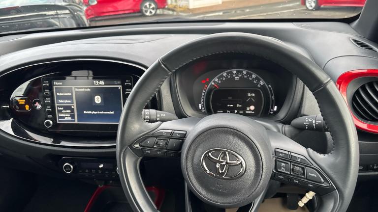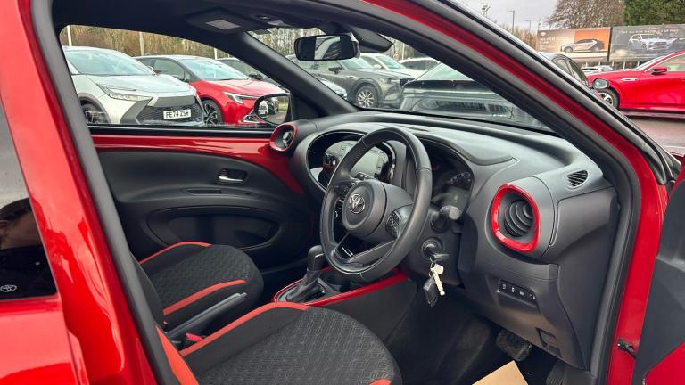 Vertu Motors Toyota Hamilton are proud to present the Toyota approvedToyota Aygo XEdge AutomaticIn stunningChilli RedThis particular vehicle comes with3manufacturer services carried out by a Toyota Approved dealer.Meet the 2022 Toyota Aygo XEdge Automatic, a compact wonder that perfectly blends practicality, high-end specifications, and an outstanding fuel economy that will turn heads and ease your commuting costs. Brought to you by Toyota, this small car is a true testament to reliable and sustainable Japanese technology.The Aygo XEdge Automatic is powered by a compact yet efficient automatic engine delivering exceptional responsiveness and fuel efficiency. This vehicle doesn't just guarantee an excellent driving performance, it also highlights your eco-friendliness by producing low CO2 emissions.Comfort is at the forefront of all rides in the Aygo XEdge with its spacious interior layout and ergonomically sculpted seats. Whether you're on a short city jaunt or embarking on an exciting road trip, the Aygo ensures all your travels are comfortable and pleasurable.The Aygo XEdge's sleek exterior combines sporty and stylish aesthetics to create a visually striking car that never goes unnoticed. Plus, its aerodynamic design not only stands out but also contributes to its remarkable fuel efficiency.Your safety is paramount in the 2022 Toyota Aygo XEdge Automatic. This compact car is fitted with an array of advanced safety features including a pre-collision system, lane tracing assist, and adaptive cruise control to ensure you and your passengers' safety during all trips.To sum up, the 2022 Toyota Aygo XEdge Automatic is a compact package showcasing incredible specifications and a superb fuel economy. Experience the future of sustainable driving today with a vehicle that asserts that size doesn't always matter when it comes to delivering standout performance..Air Conditioning, Climate Control, Metallic Paint, Cruise Control, Alloy Wheels, DAB Radio, Bluetooth, Low Mileage, Manufacturer Approved, Adaptive cruise, Apple-Android Play, Rear Camera, Auto Lights& Lane Departure, Floor mats, Privacy glass, Front and rear power windows, Auto wipers, Rain sensor, Rear windscreen defogger, Rear windscreen wiper, Variable intermittent windscreen wipers, Front power windows, Traction control, Hill start assist control (HAC), Anti lock braking system + Electronic brake force distribution, Emergency brake light signal (EBS), Vehicle Stability Control (VSC), Bluetooth connectivity, Smart phone integration with Apple car play/Android Auto, Adaptive cruise control, Lane departure warning system, Traffic sign recognition, Lane tracking assist - LTA, Start and stop, Fatigue monitor, PAS, Electric power steering, Adjustable speed limiter, Driver attention alert system, Voice recognition switch on steering wheel