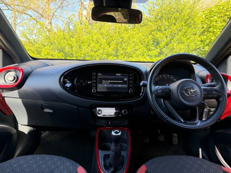 The Toyota Aygo is a Brilliant Little Car that Does Exactly What you Need. Its Compact, Reliable, and Incredibly Affordable to Run. Ideal for New Drivers, Commuters, or Anyone Looking for No-Fuss Motoring. With Its Bold X-Shaped Front Design, the Aygo has a bit More Personality than Most City Cars. Sitting on 15" Wheels, its Easy to Park, Easy to Live With, and Has Just Enough Quirk to Stand out Without Trying too Hard. The Exterior Presented in Contrasting Red and Black Features 15" Alloy Wheels and Rear Privacy Glass. To the Interior we find, Digital Climate Control, DAB Digital Radio, Reverse Camera, Bluetooth Telephone Preparation, Bluetooth Audio, Cruise Control, Automatic Windscreen Wipers, Automatic Headlights, Electric Windows and Electric Wing Mirrors. This Ultra Low Mileage Vehicle also Benefits from 2 Keys, an MOT Until September 2026 and a Full Toyota Service History. Competitive finance options are available, and part exchange vehicles are welcome. A complimentary three months warranty is included subject to age and mileage restrictions. Information provided has been taken from 3rd party sources, and we cannot ensure the accuracy of details and features. Please check yourself or ask a salesperson for more information..18in Alloy Wheels - 4-Double-Spoke - Bi-Tone Dark Grey - Machined-Face, 3-Spoke Leather Steering Wheel, 4.2in Colour Multi-Information Display Screen, 8in Toyota Touch Multimedia System, ABS - Anti Lock Braking System with Emergency Brake-Light System - EBS, Adjustable Speed Limiter -ASL- Switch on Steering Wheel, Analogue Speedometer, Audio Switches on Steering Wheel, Auto Headlights, Auto Wipers, Automatic Air Conditioning, Automatic Headlight Cut-Off, Black Door Moulding, Black Insert on Steering Wheel, Black Wheel Arch Moulding, Bluetooth Connectivity, Boot Door Scuff Plate, Centre Room Light, Child Safety Door Locks, Chrome Interior Door Handles, Chrome Surround on Air Conditioning Button, Clean Air Filter, DAB Digital Radio, Digital Tachometer, Door Handles - Body Coloured, Door Mirrors - Gloss Black, eCall Emergency Call System, Electric Power Steering - EPS, Floor Mats, Follow Me Home Headlights, Front 12V Power Outlet, Front Bumper - Body Coloured, Front Fog Lights, Front LED Light Guide, Front Passenger Airbag On-Off Switch, Front Power Windows, Front Seat Belt Reminder, Gloss Black Upper Front Grille, HAC - Hill Start Assist Control, Headlight Cut-Off Reminder, Headlights - Halogen, Headrests - Front - Deco Art, Intelligent Adaptive Cruise Control Switch on Steering Wheel, ISOFIX Child Restraint System - 2x Rear, Key Reminder Warning, Lane Departure Alert with Switches on Steering Wheel, Manual Headlight Levelling, Manual Tilt Steering Wheel, Manually Reclining Driver and Passenger Seat, Manually Sliding Driver and Passenger Seat, Multi-Info Switches on Steering Wheel, Pollen Air Filter, Power Back Door, Power-Adjustable - Electric - Heated Door Mirrors, Pre-Collision System with Emergency Steering Assist, Privacy Glass - Rear Side Windows, Rear Headrests x2, Rear Seat Belt Reminder, Rear Window Defogger - De-Icer, Rear Window Wiper, Remote Power Door Locks, Reversing Camera, Roof - Head Lining Adhesive Head Lining, Seats - 50-50 Split Folding Rear, Seats - Drivers Height Adjustment, Short Antenna, Smartphone Integration - Apple Car Play and Android Auto, Speakers x4, Speed Limiter Information, Storage - Rear Door Pockets, Supplemental Restraint System - SRS - Airbags - 6 Airbags, Telephone Switches on Steering Wheel, Toyota Safety Sense, Traction Control - TRC, Tyre Pressure Warning System, Tyre Repair Kit, USB Connector, Vanity Mirror on Driver and Passengers Sun Visor, Variable Intermittent Windscreen Wipers, Voice Recognition Switch on Steer